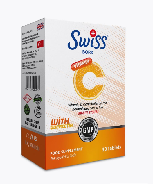 Swiss bork Pureway. Vitamin C with quercetin. Витамин С 30 таблеток. Комплекс витамина С с кверцетином пособствует нормальной работе иммунной системы; Способствует поддержанию нормальной функции иммунной системы во время и после интенсивных физических упражнений; Способствует образованию коллагена, который необходим для нормального функционирования кожи, костей, хрящей, зубов, десен, сосудов; Способствует нормальному энергетическому метаболизму; Способствует снижению усталости и утомления; Поддерживает здоровье надпочечников. Витамин С усиливает функции лейкоцитов и собственное производство организмом соединений, которые способствуют укреплению иммунной системы, как антиоксидант защищает организм от повреждений, вызванных вредным воздействием свободных радикалов. Кверцетин - известный нецитрусовый биофлавоноид, оказывающий противовоспалительный и антигистаминный эффекты. Способ применения: для взрослых 1 капсула в день. Комментарии к товару