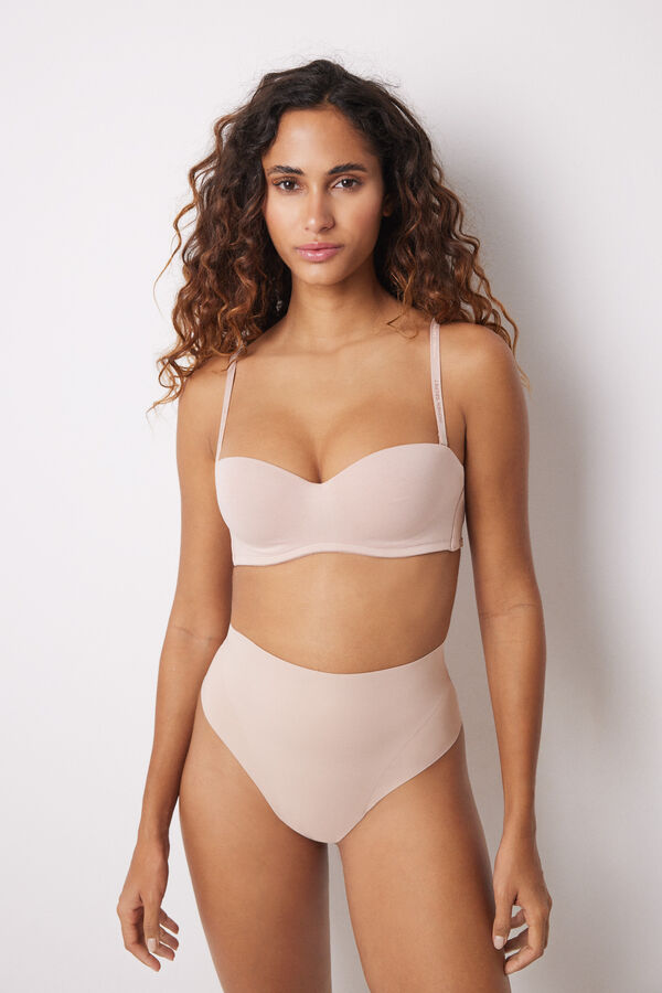 Tanga alta con efecto reductor y push up en color nude, con detalle de logo WS en la espalda. Estiliza tu silueta y es perfecta para llevar bajo las prendas que más se ciñen al cuerpo.