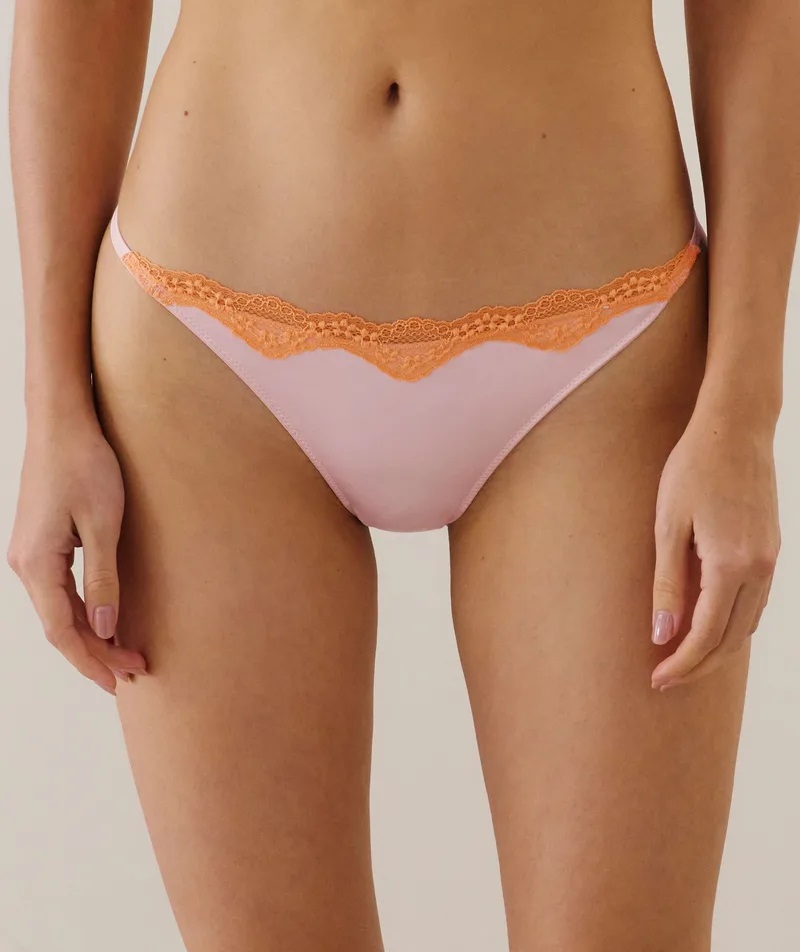 Déjate seducir por el tanga GIROFLIZ de satén. Realzado con delicados toques de encaje, combina sensualidad y elegancia. ¡Nos encanta el detalle de la joya