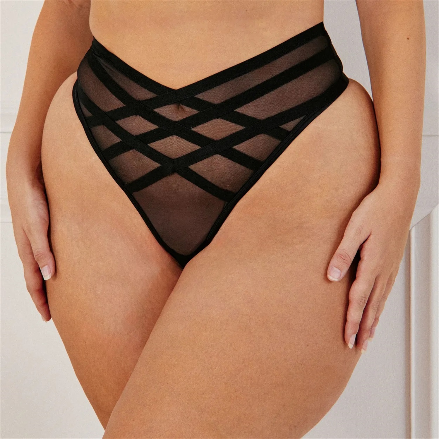 Déjate seducir por este tanga de tul BEMINIEZ. Con su talle alto, resalta las curvas femeninas. Su lazada inspirada en el bondage en la parte delantera lo convierte en un esencial entre tu lencería.