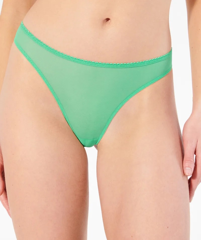 Enamórate de nuestro tanga SIMPLYIZ. Este básico de tul es atemporal. Te encantará su corte bajo pero cómodo. Incluso puedes combinarlo con su sujetador a juego para un conjunto innovador. Además, forma parte de nuestra gama We Care.