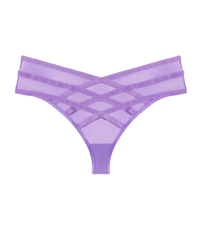 Elige este tanga de tul BEMINIEZ. Talle alto para realzar tus curvas. Su lazada inspirada en el bondage en la parte delantera lo convierte en un imprescindible de tu lencería.
