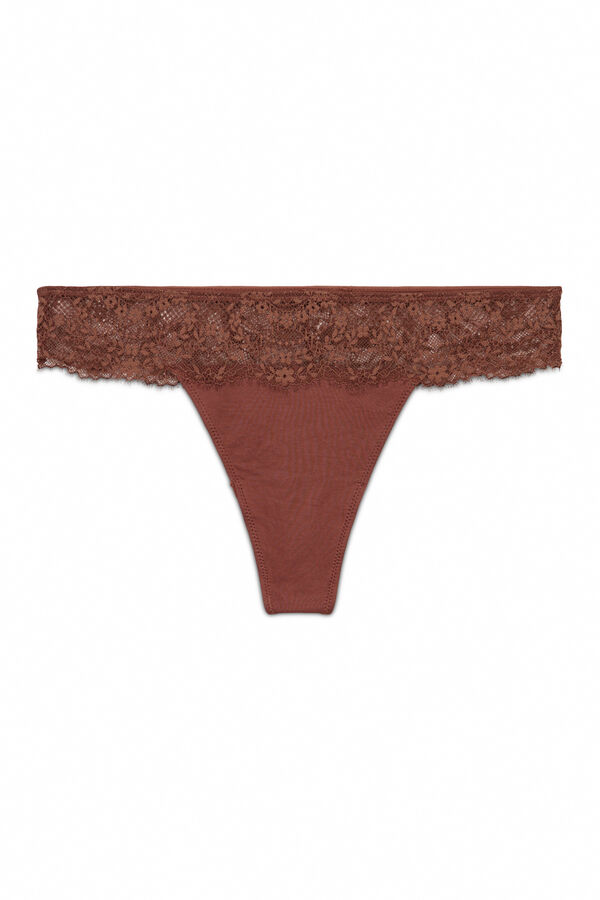 Braga tanga, en tejido modal, con detalle de tira de encaje, diseñada para ofrecer un ajuste perfecto y comodidad. Ideal para complementar tus outfits más sexys.