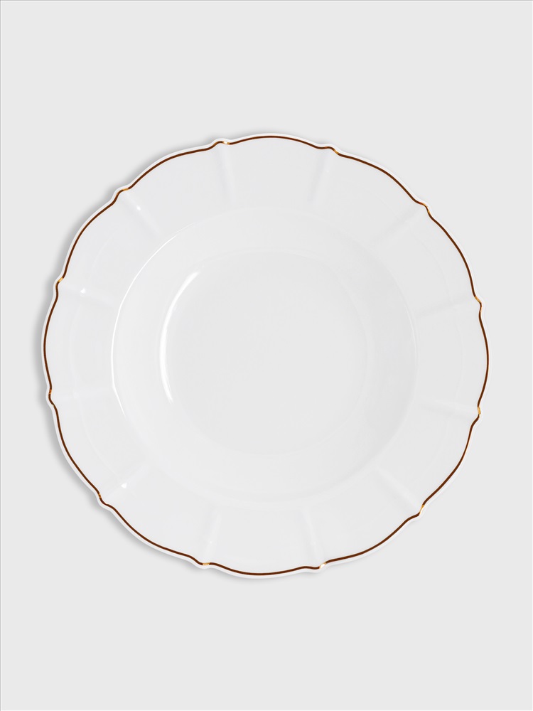 Бренд: ANNA LAFARG EMILY Коллекция: РЕГУЛЯРНАЯ Страна бренда: Китай Тарелка суповая, 21,5х3 см, фарфор F, белая, с золотистым кантом, Lotus gold. Материал: фарфор Fine Bone China. Мыть тёплой водой с применением жидких моющих средств. Не использовать в СВЧ и в посудомоечной машине.