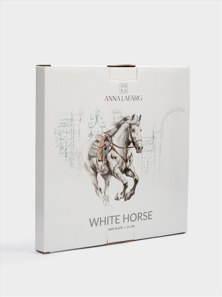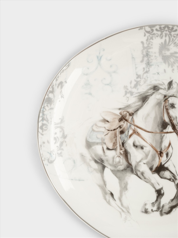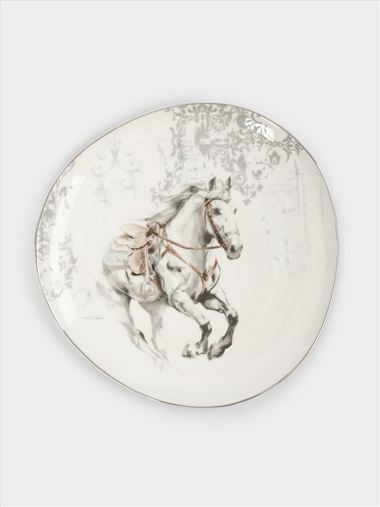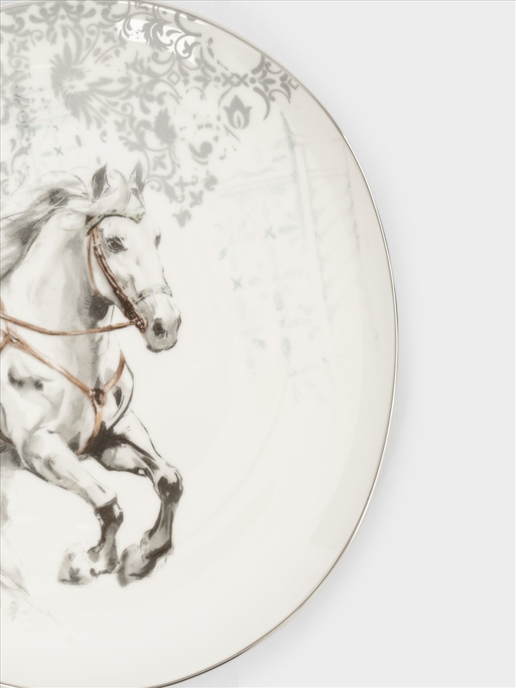 Тарелка закусочная, 21 см, фарфор N, белая, с серебристым кантом, Конь, White horse