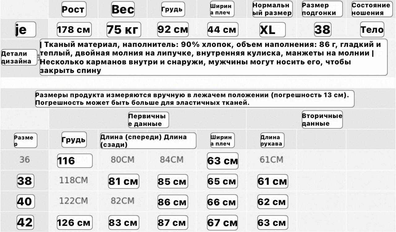 Материал: полиэстер, подкладка нейлон, наполнение 90% утиный пух, 10% перья Размер: 36,38,40,42 Комментарии к товару