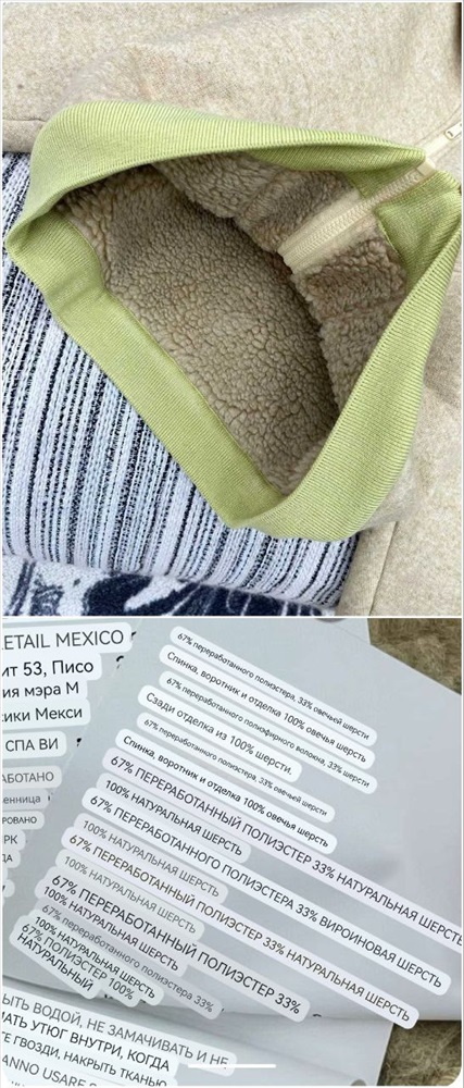 Снаружи- переработанный полиэстер 67%, шерсть 33%