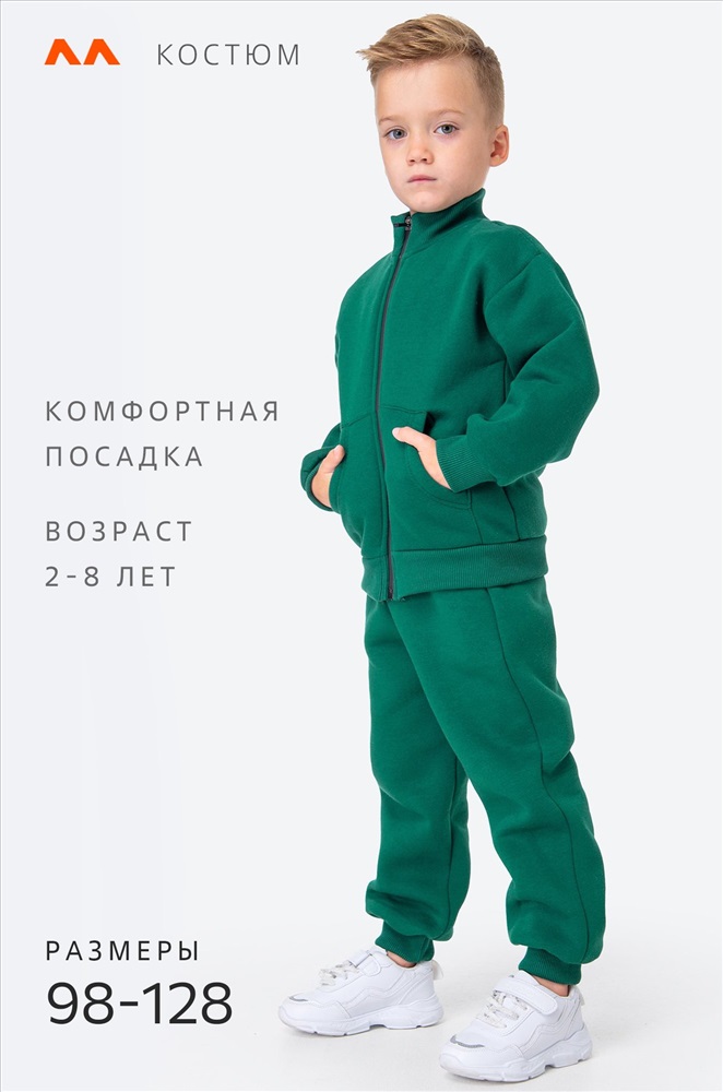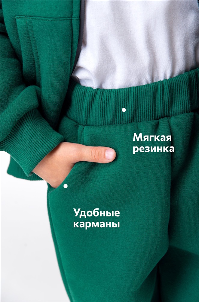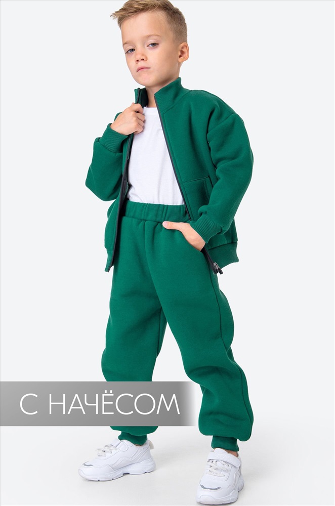 Теплый спортивный костюм с начесом для мальчика выполнен из плотного футера трехнитки. Толстовка с застежкой на молнию, удобные карманы, крой оверсайз и мягкий манжетный пояс делают детский костюм изумрудного цвета невероятно уютным. Однотонный зимний костюм двойка поможет создать крутые повседневные образы. Зеленый костюм для детей выполнен из натурального 100% хлопка, плотной трикотажной ткани. Начес отлично сохраняет тепло и не пропускает холодный воздух. Костюм хорошо тянется и держит форму даже после частых стирок. В комплекте толстовка зипка с длинными рукавами и брюки джоггеры. Эластичные манжеты не позволяют рукавам и штанинам задираться даже при активных движениях, а уютные карманы согревают руки в холодную погоду. Мягкая резинка в поясе штанов нежно прилегает к телу, даря удобную посадку. Утепленный брючный костюм oversize идеален для зимы, а также холодных осенних и весенних дней. Хлопковый костюм станет отличным вариантом для прогулок осенью и весной. В нем удобно заниматься спортом, бегом на улице в холодный сезон. Модель Максим, рост 111 см, параметры 55-53-56 см. На нем размер 110.