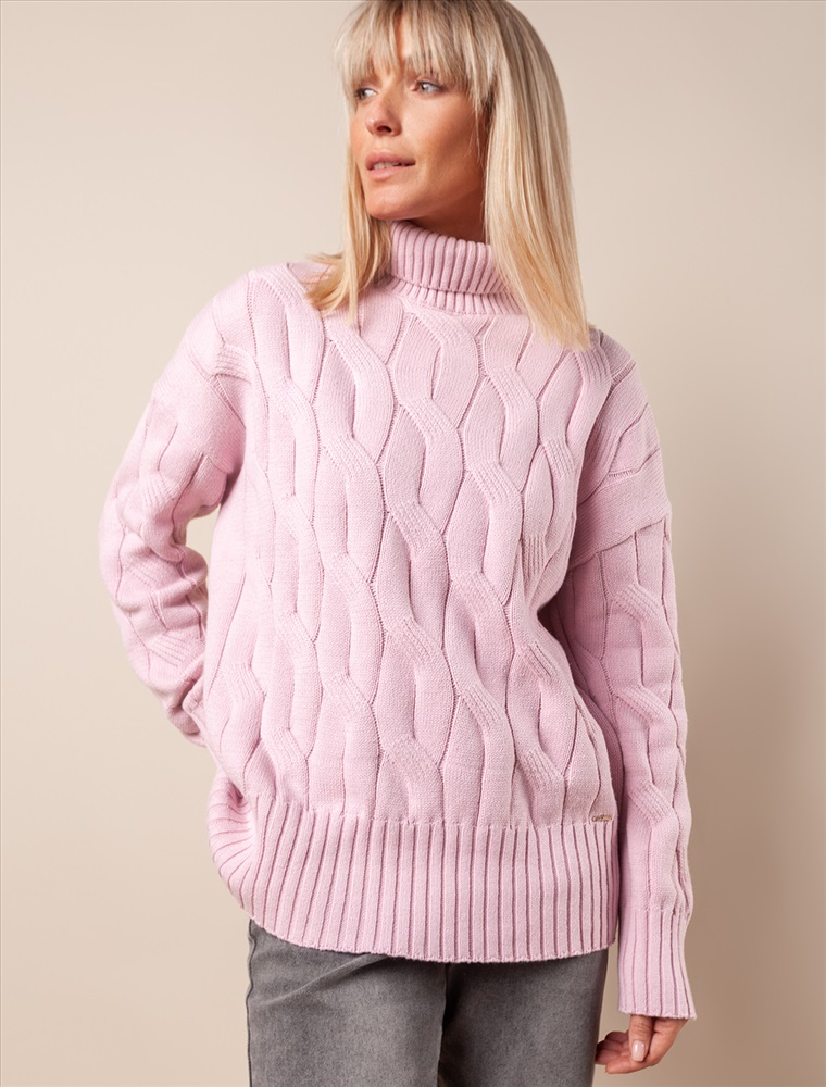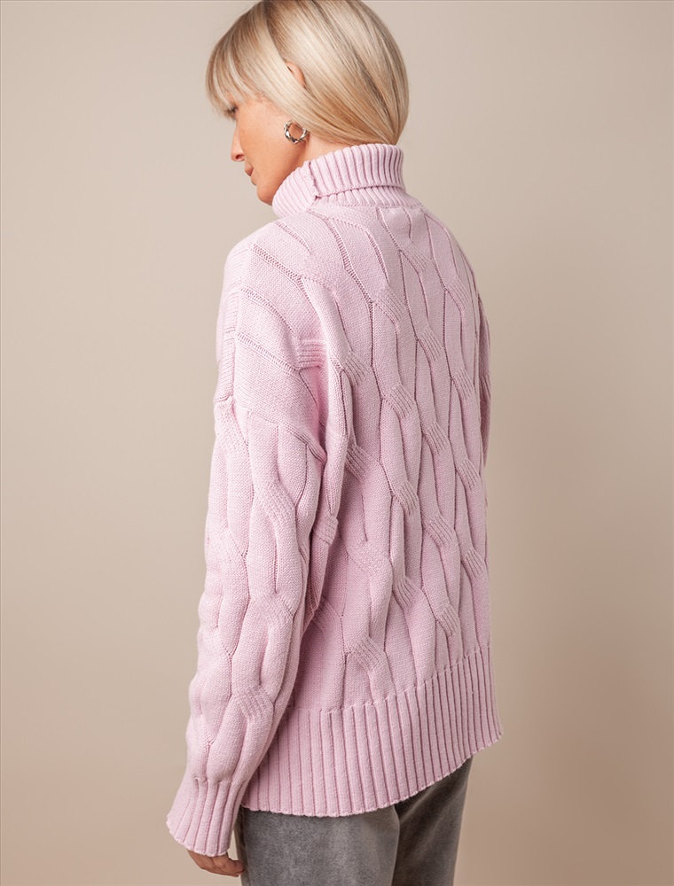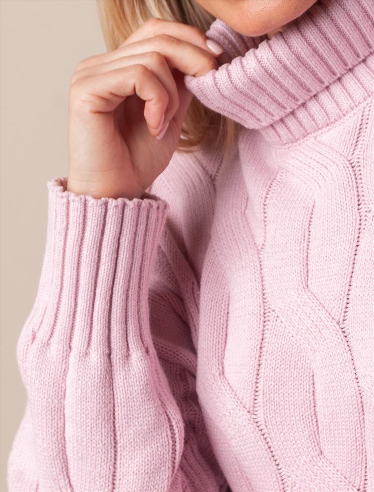Параметры модели на первом фото: Рост 170, бюст 89, талия 63, бедра 92 Уютный свитер с крупной вязки с узорами косы выполнен из мягкой хлопковой пряжи с акрилом. Модель абсолютно не колется и очень комфортная в носке даже на голое тело. Отлично согревает при этом не перегревая. Хорошо сочетается с брюками из эко-кожи и джинсами на флике, вельветом.
