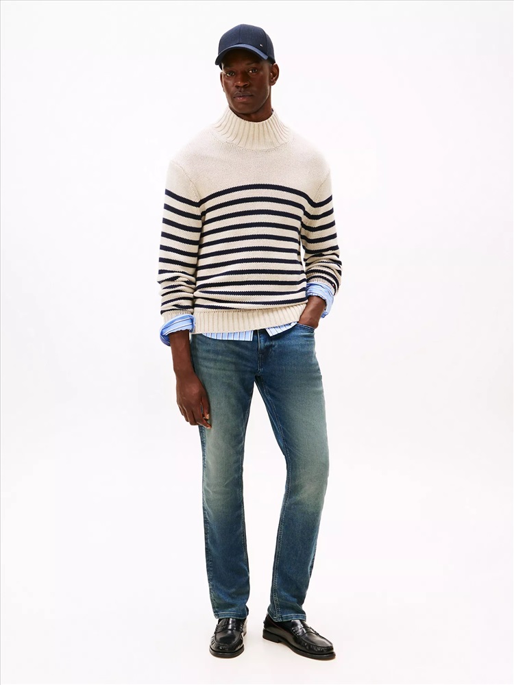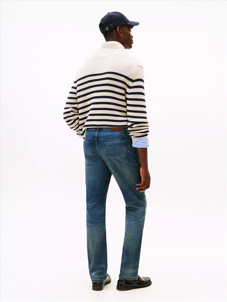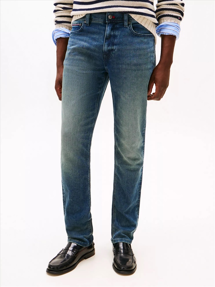 Tommy Hilfiger men's jean. These jeans are made from ultra-soft THFlex Knit Denim with added stretch for an extra-comfortable fit. Designed in a fan-favorite straight cut, this pair will be in your wardrobe rotation all year.