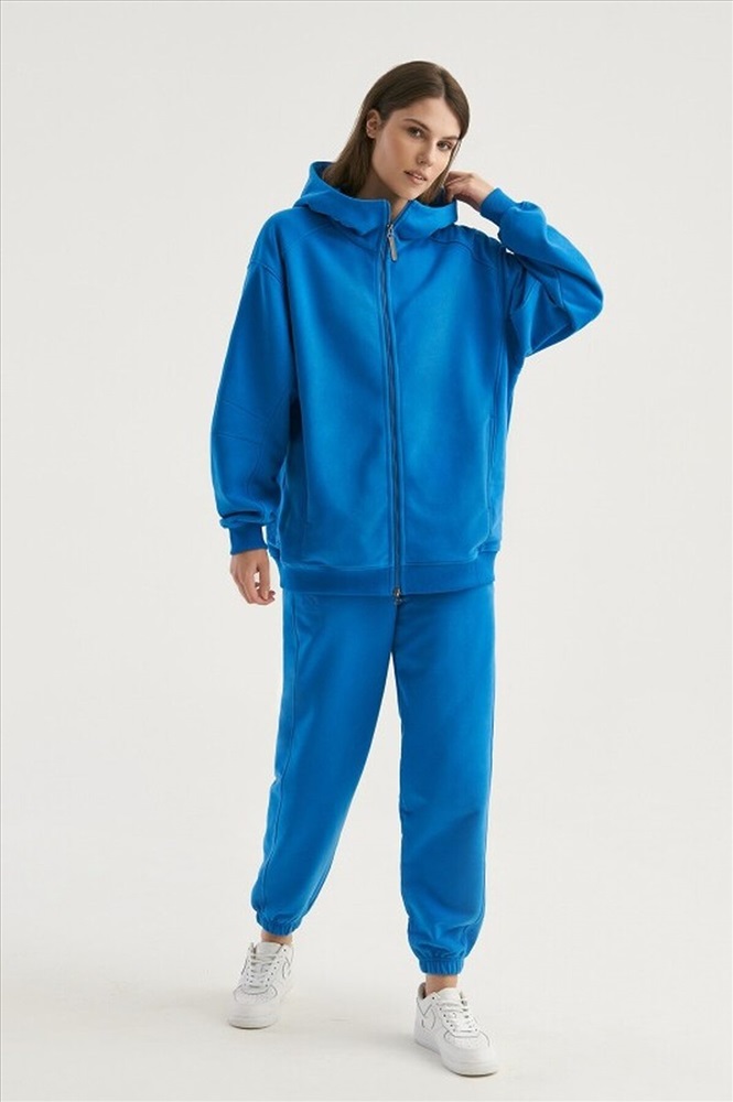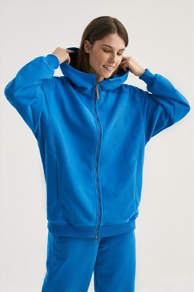 Толстовка унисекс на молнии, с отрезными кокетками. Двойной капюшон. Рукав втачной с вытачками по переднему шву. В рельефах переда карманы в шве. Манжеты и пояс из кашкорсе.