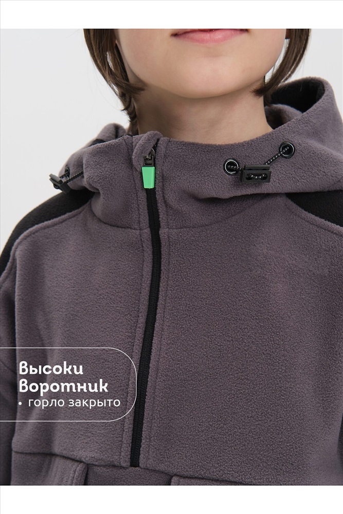 ID товара: 1104426 Состав: 100% Полиэстер Сезон: Демисезон Длина: Средняя Фасон: Свободный Рукав: длинные Вид застежки: Молния Вырез горловины: Капюшон Тип карманов: Накладные Основная ткань: Полиэстер Стиль: повседневный Страна бренда: Россия Страна производства: Китай Толстовка флисовая для мальчика. Кофта теплая объемная со спущенным плечом заменит ветровку в прохладную погоду весной и осенью. Высокий воротник-стойка с утяжкой защитит от холода и ветра. Толстовка застёгивается на короткую молнию — актуальный модный тренд и оснащена накладными карманами для нужных мелочей. Модель выполнена из 100% полиэстера — она лёгкая, мягкая, износостойкая, просто стирается и быстро сохнет. На рукавах манжеты из основной ткани, она в меру растягивается и кофту легко надевать. Широкий размерный ряд позволяет приобрести эту флиску как годовалым малышам так и подросткам. Помните о правильном уходе за изделием: рекомендуется стирать при температуре не выше 30 °C, без предварительного замачивания, с изнанки. Это поможет сохранить качество и цвет изделия на длительное время. Комментарии к товару