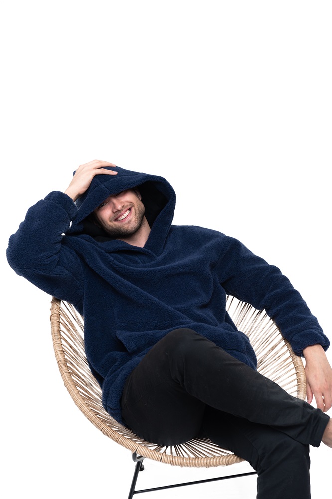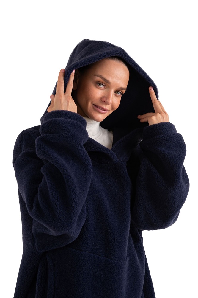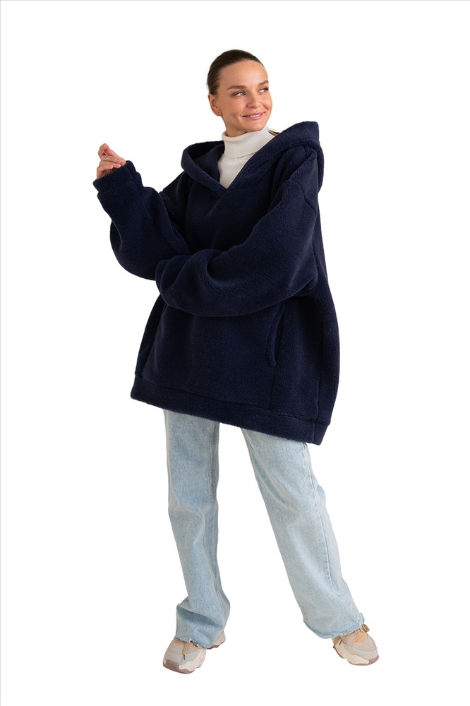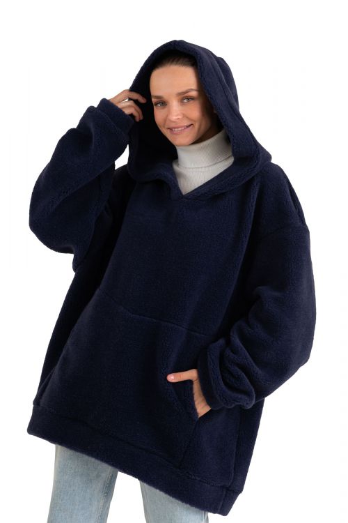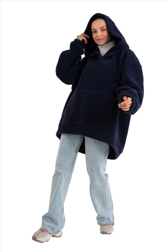 Толстовка женская из овечьей шерсти оверсайз HOT TREND (с капюшоном, цвет Индиго) цвет СИНИЙ