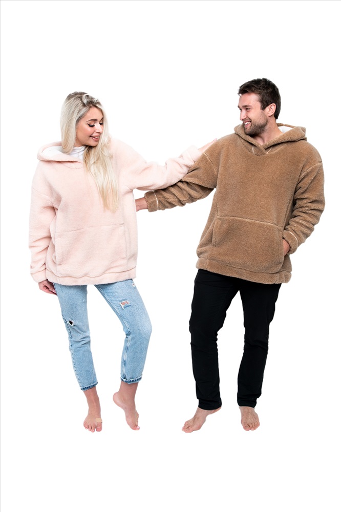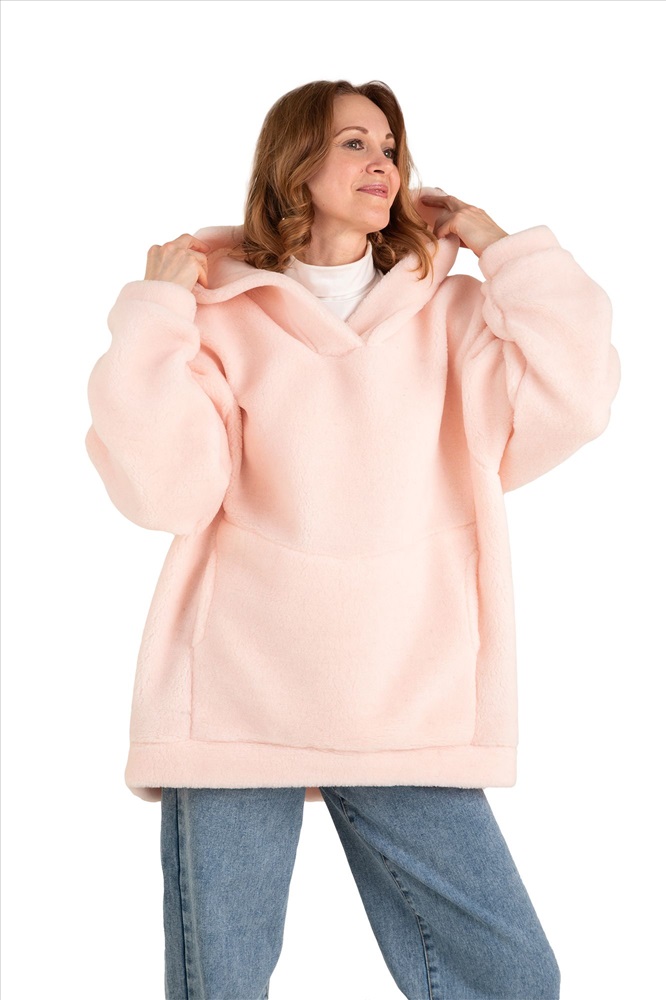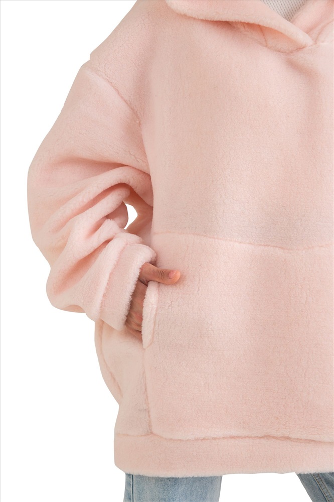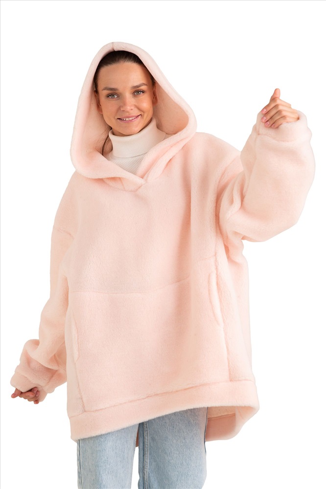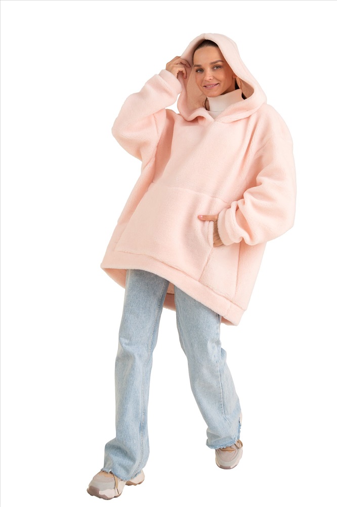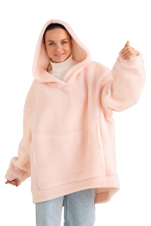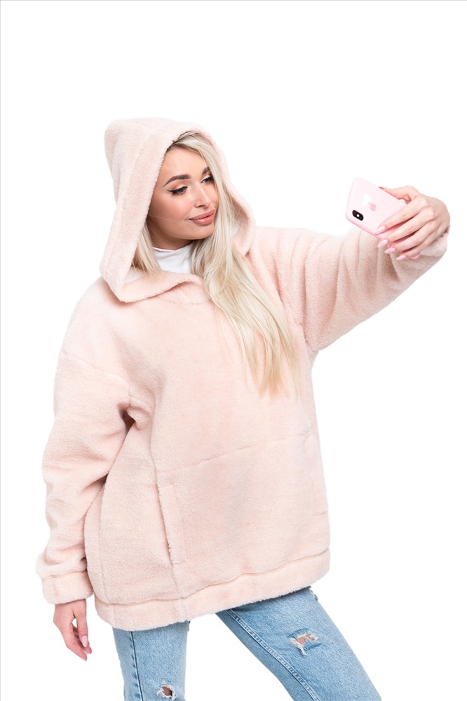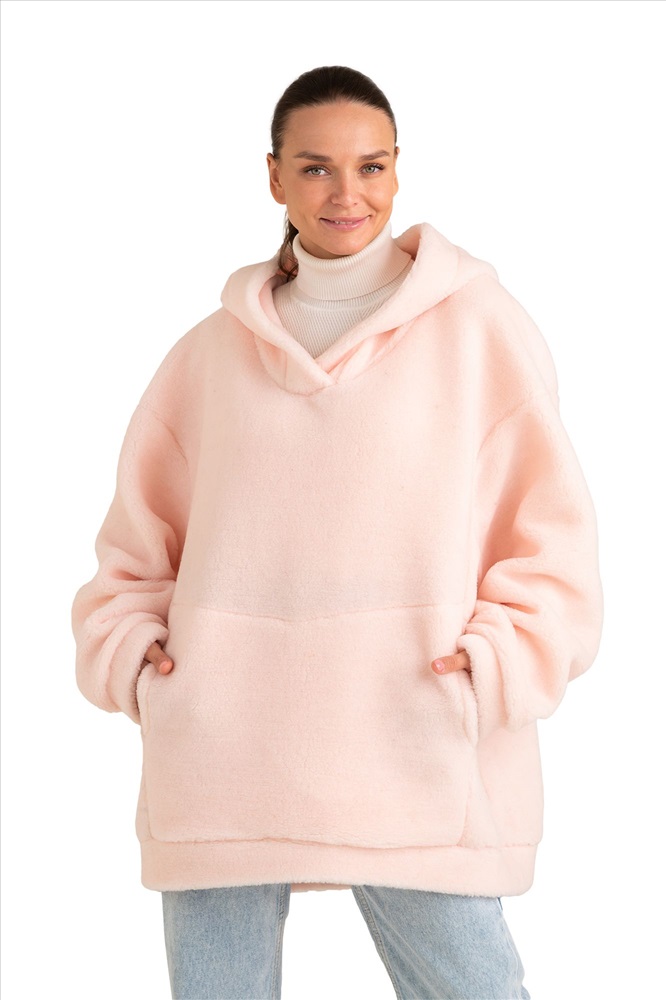 Толстовка женская из овечьей шерсти оверсайз HOT TREND (с капюшоном, цвет Пудра) цвет ТЕЛЕСНЫЙ