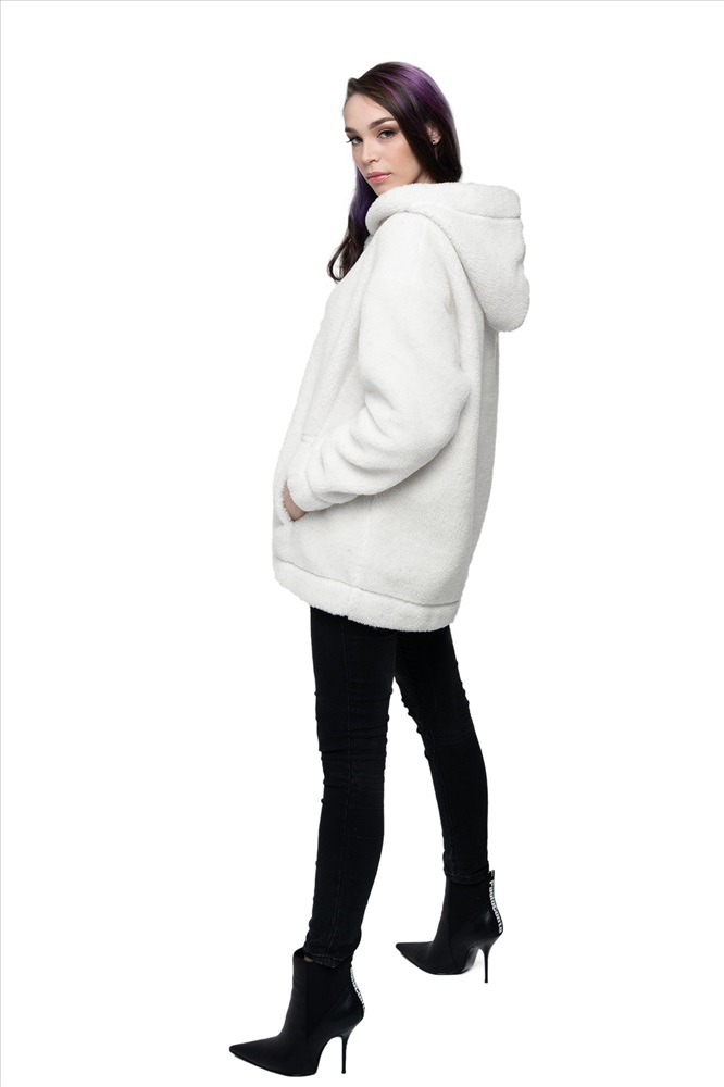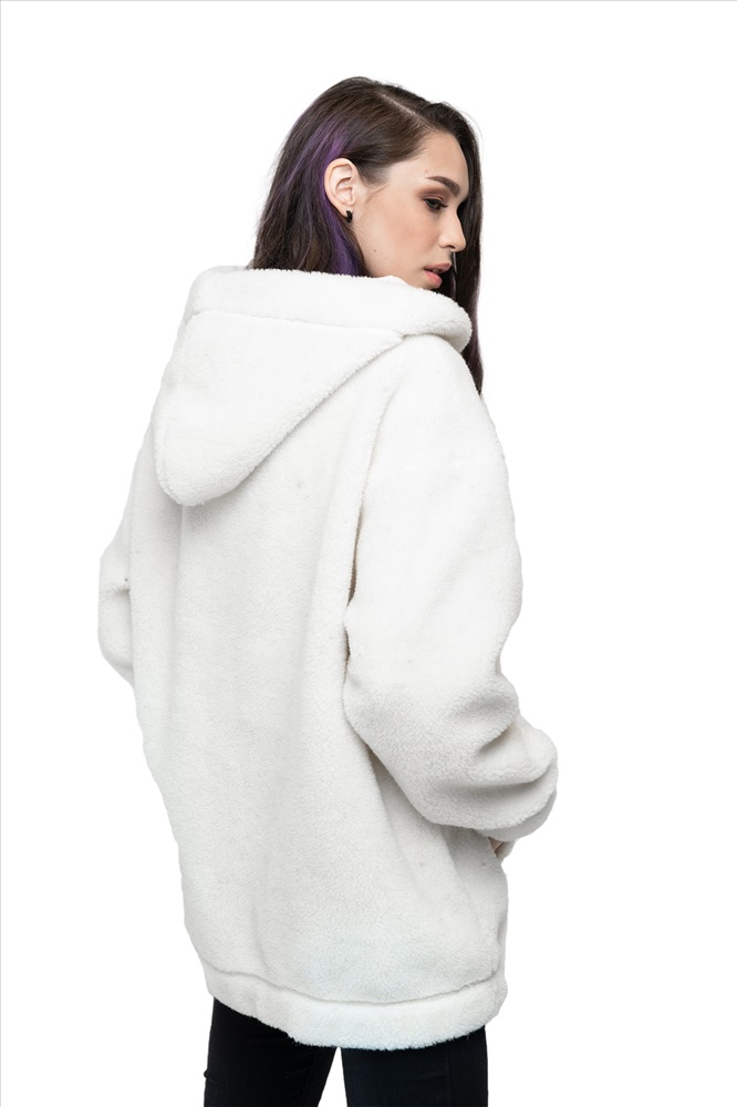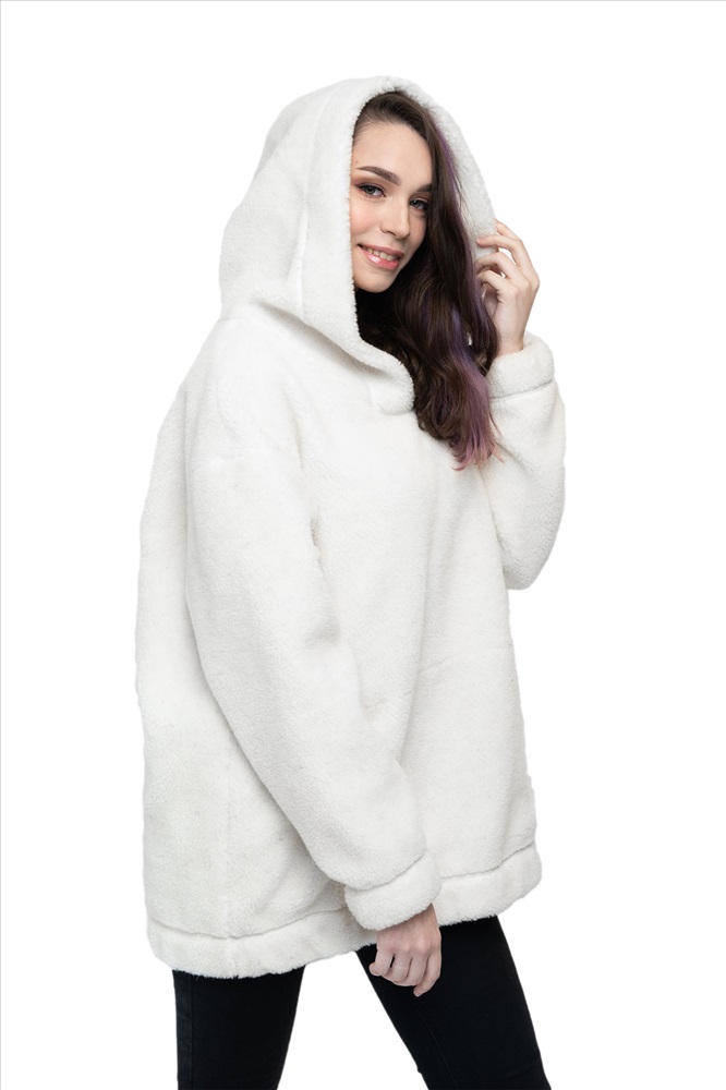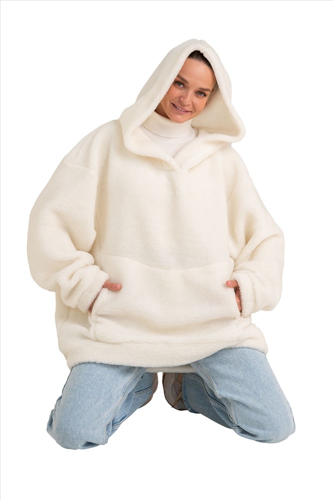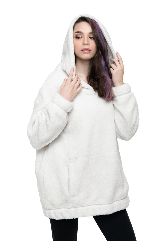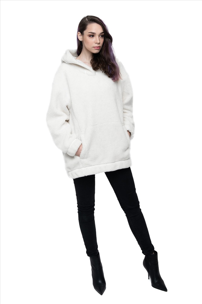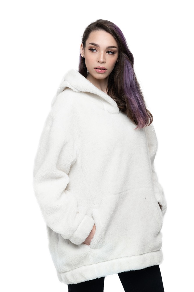 Толстовка женская из овечьей шерсти оверсайз HOT TREND (с капюшоном, цвет Ваниль) цвет БЕЛЫЙ