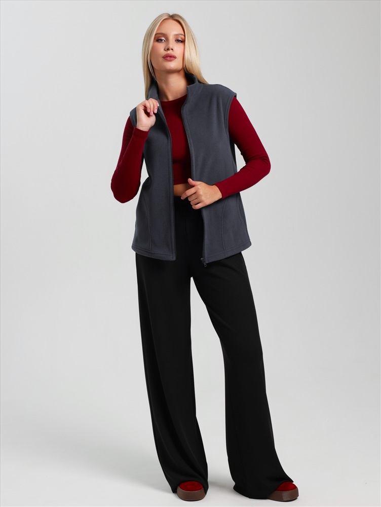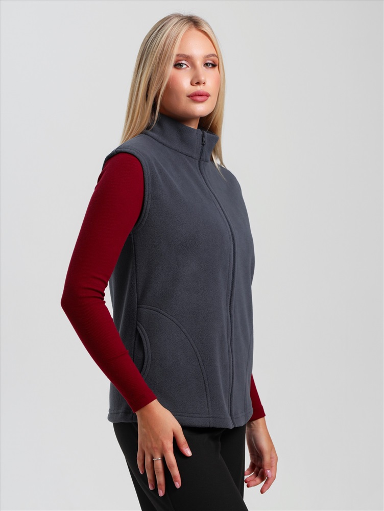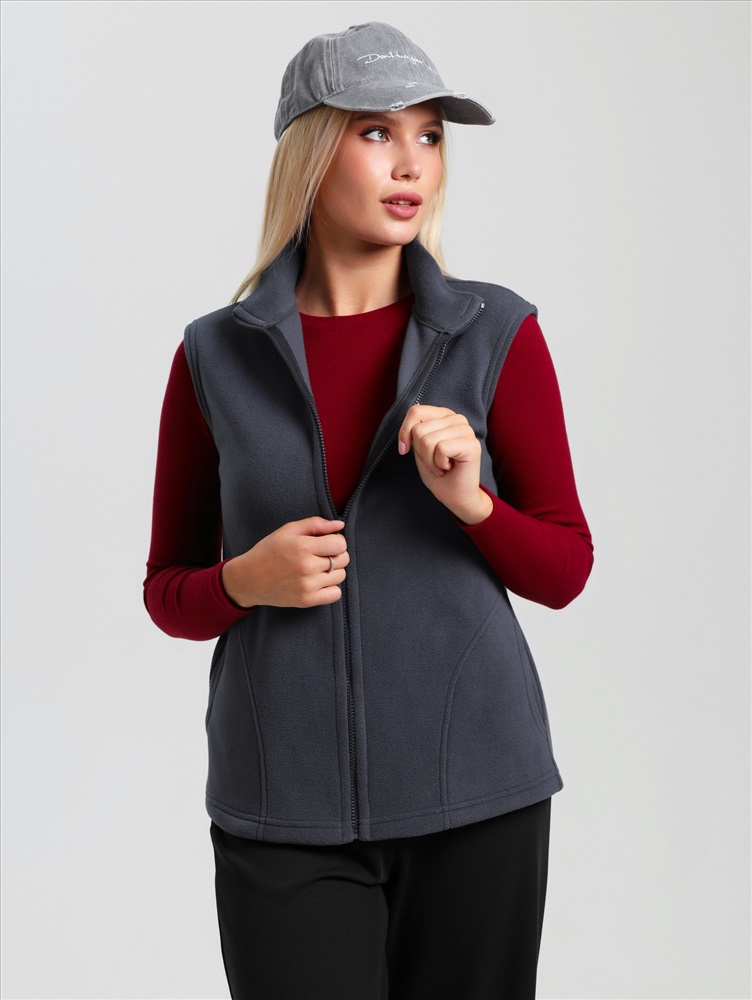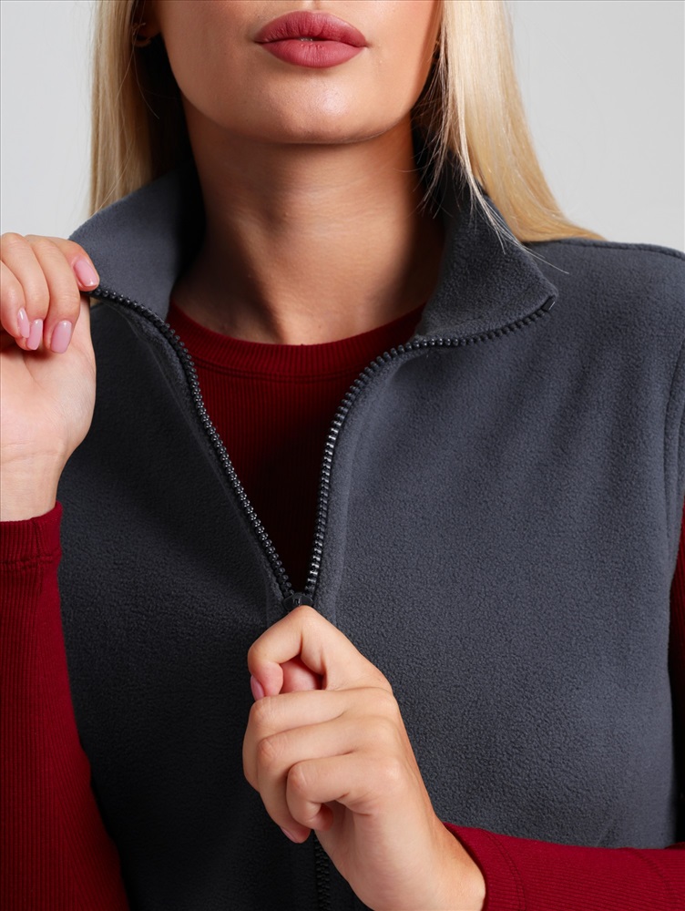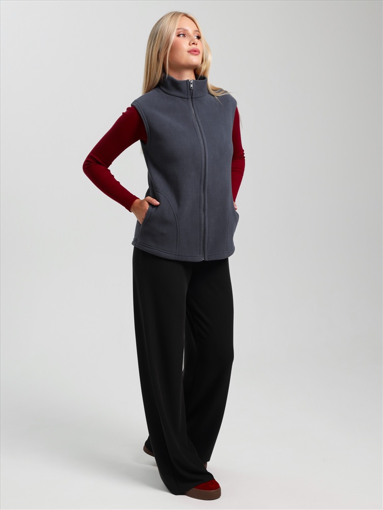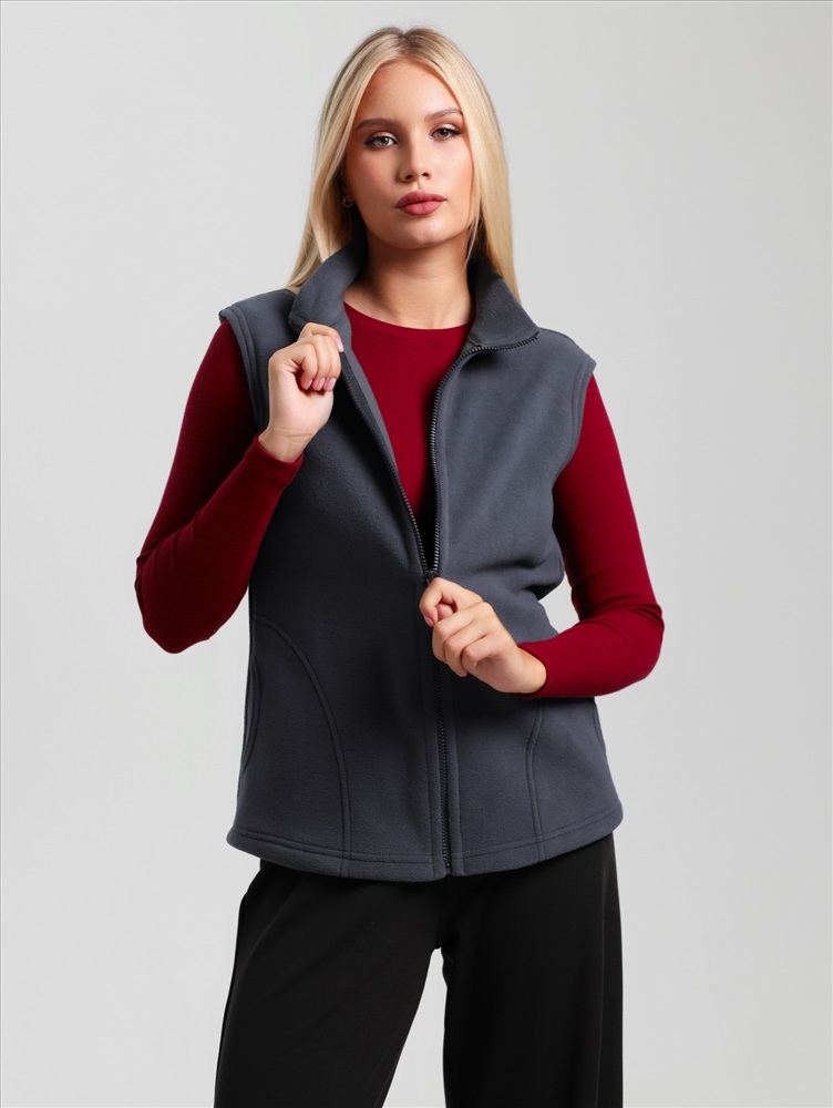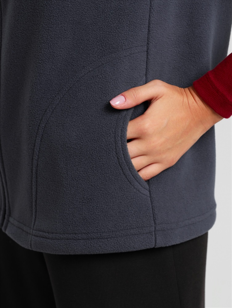 Ткань: Флис Флис - Название флисовой ткани произошло от англ. fleece – ворс, шерсть. В отличие от натуральных шерстяных тканей, флис – синтетическая ткань, при изготовлении которой используется полиэстер и другие искусственные нити.Однако, как и шерсть, флис обладает способностью хорошо сохранять тепло, а, кроме того, более легок, неприхотлив, и обладает влагоотталкивающими свойствами.! Ист. справка - флисовая ткань впервые была получена в конце 20 в. Открытие было удостоено Нобелевской премии, и не зря- материал оказался достойной заменой шерсти – достаточно теплый, но в то же время, позволяющий телу «дышать». Жилет молодежный из трикотажного полотна «флис», полуприлегающего силуэта, воротником «стойка», карманами в боковых швах фигурной формы, центральной бортовой застежкой на тесьму «молния».