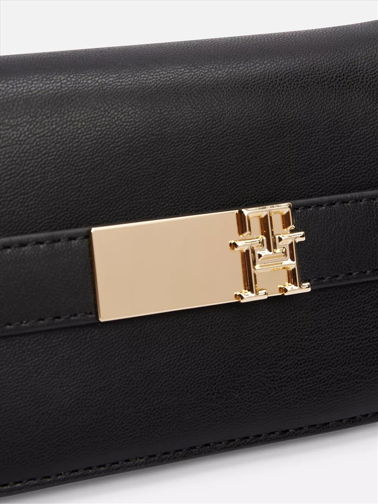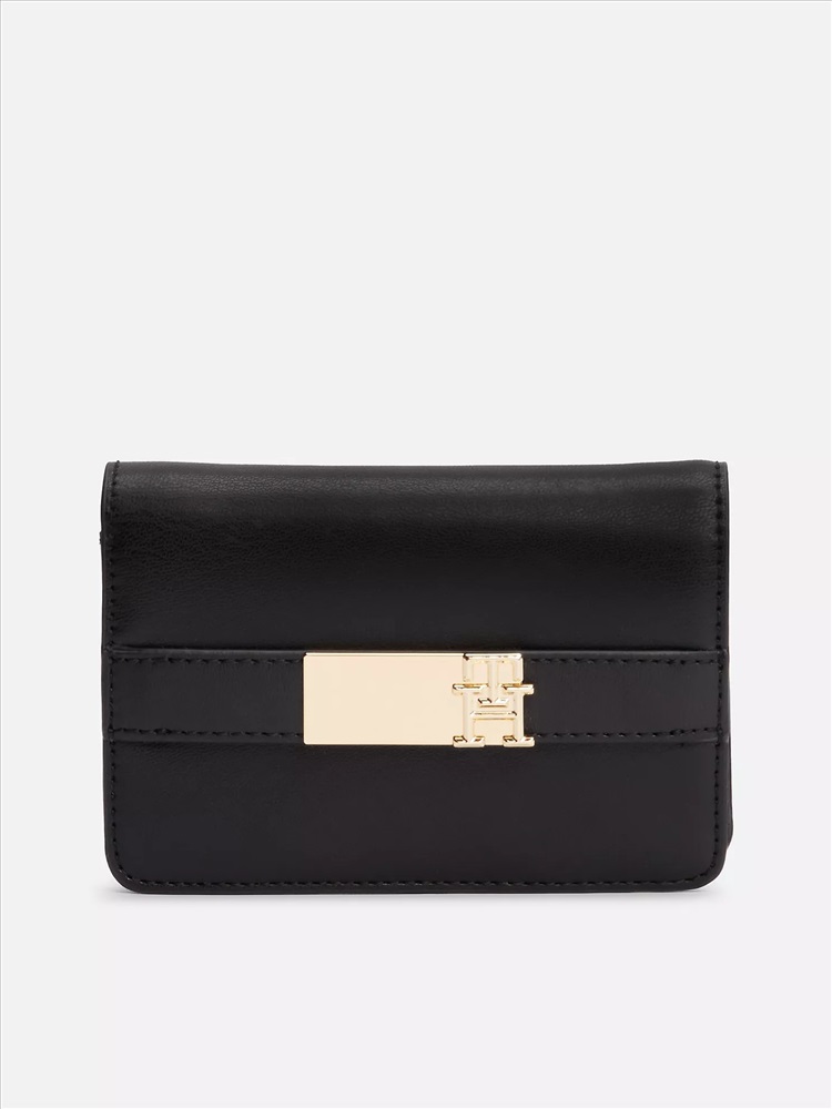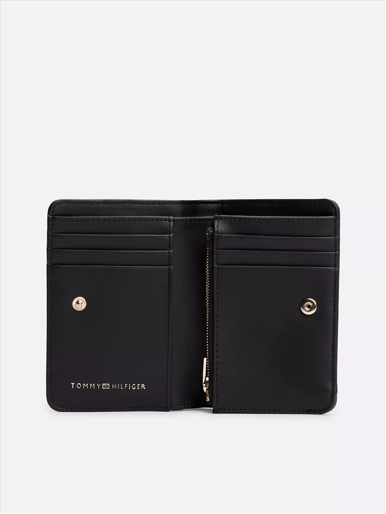 Tommy Hilfiger women's bag. Gold-tone hardware and logo branding define our latest wallet, designed in an understated, slim shape with a snap flap that opens to reveal plenty of space for your cards and currency.