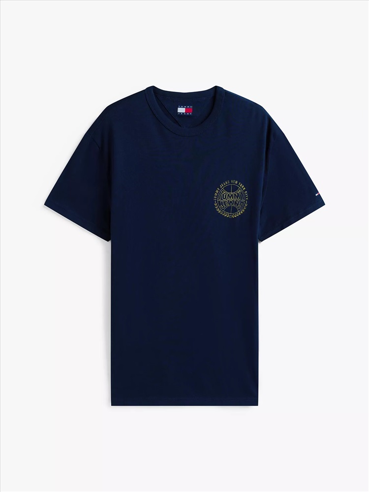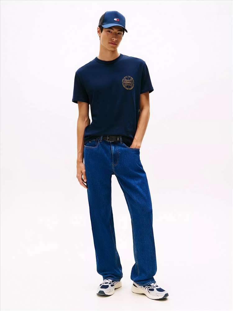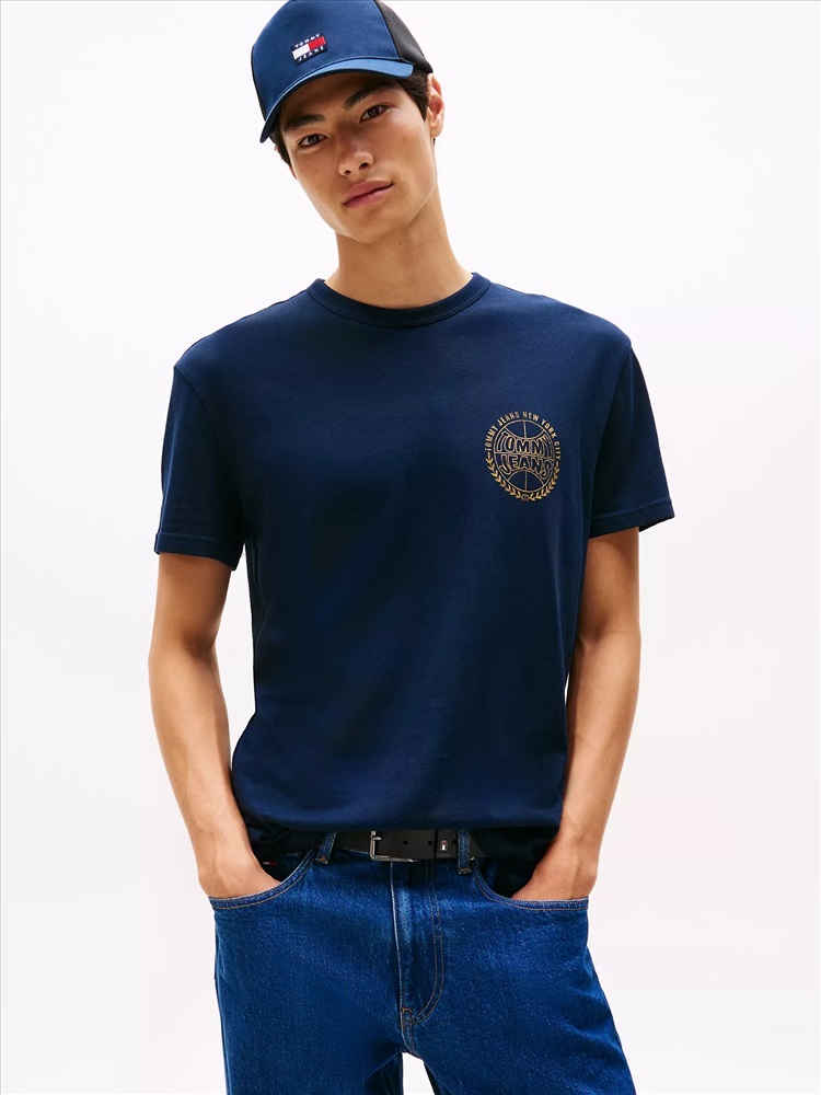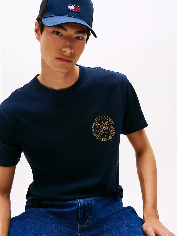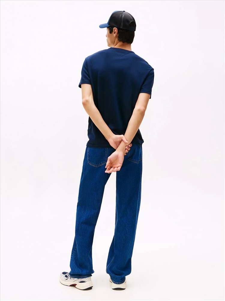 Tommy Hilfiger men's T-shirt. Our textured, dry-carded jersey tee has a slightly fuzzy, soft feel. This breathable cotton weave keeps you cool and comfortable all day. Part of our Tommy Jeans collection.