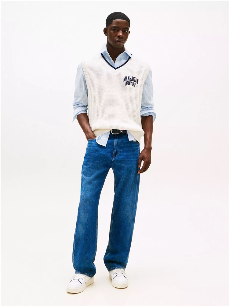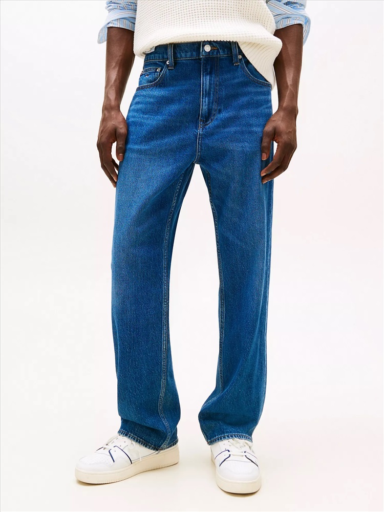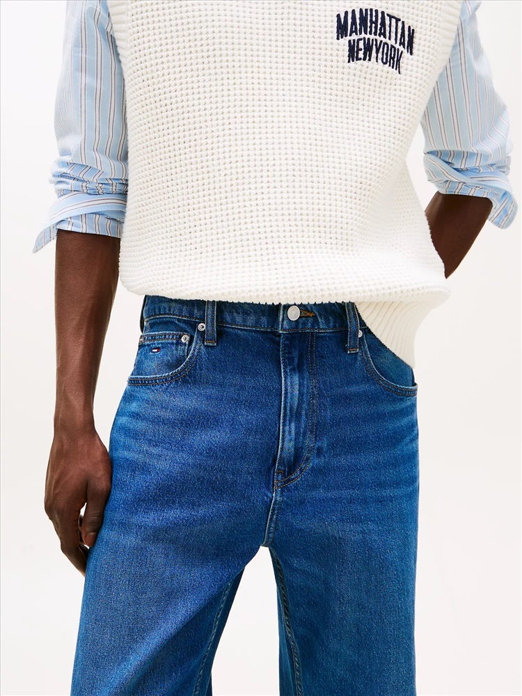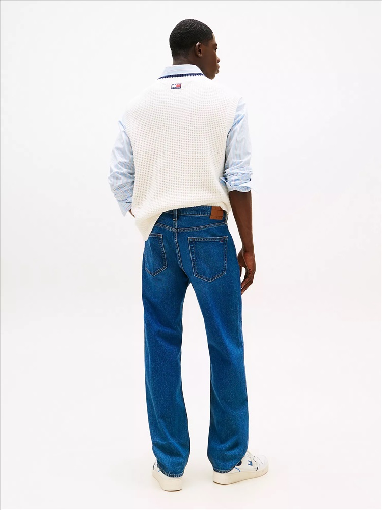 Tommy Hilfiger men's jean. Sitting slightly higher on the waist and with a roomier top, our straight-cut jeans create an effortlessly laid-back look. Part of our Tommy Jeans collection.