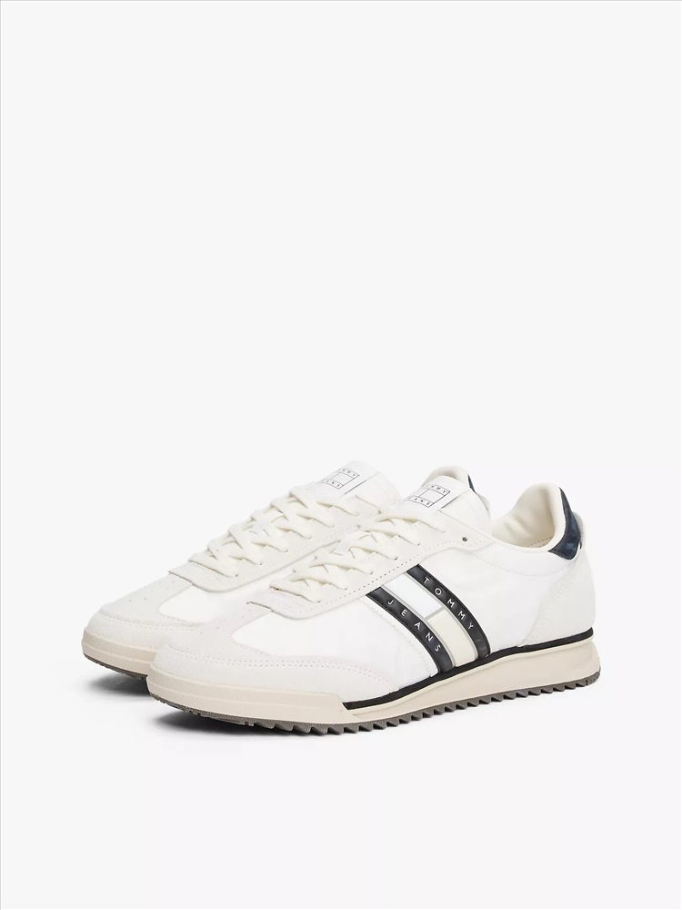 Tommy Hilfiger men's sneaker. These low-tops are all about old-school vibes, thanks to the retro runner silhouette and plush suede accents. Part of our Tommy Jeans collection.