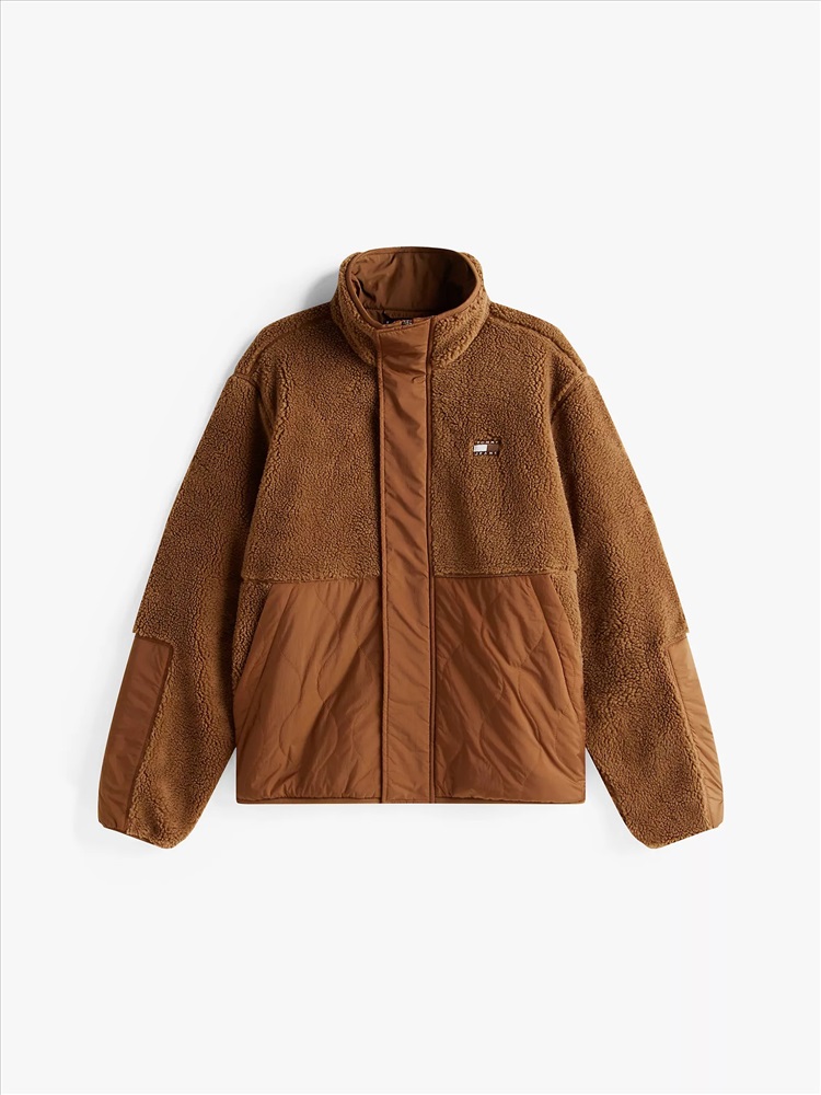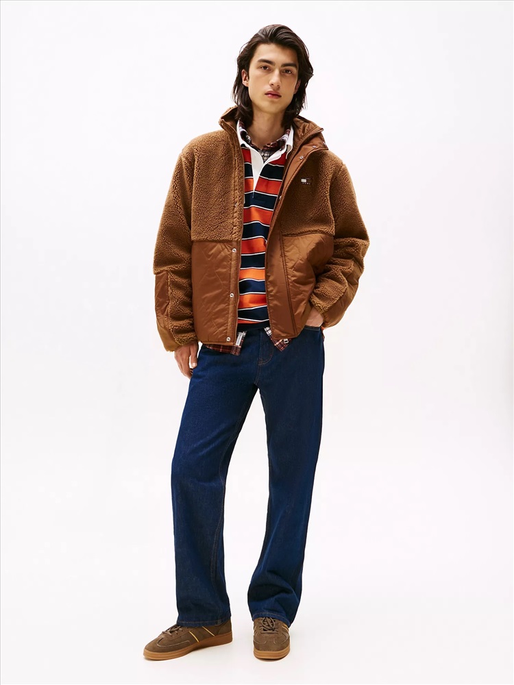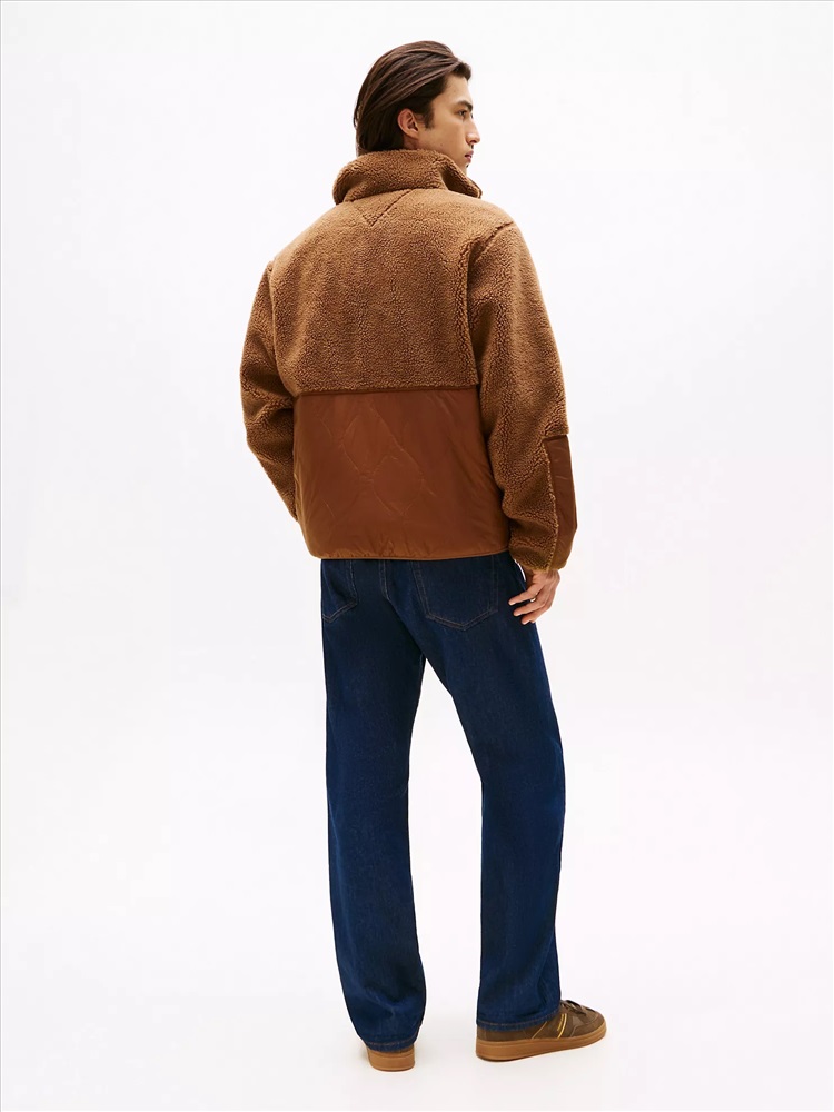 Tommy Hilfiger men's jacket. Ideal for the changing seasons, this relaxed-fit jacket combines a plush teddy finish with quilted panels for warmth when the temperature drops. Part of our Tommy Jeans collection.