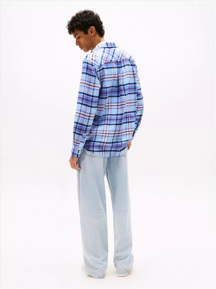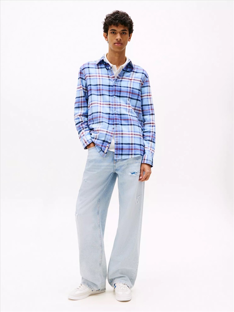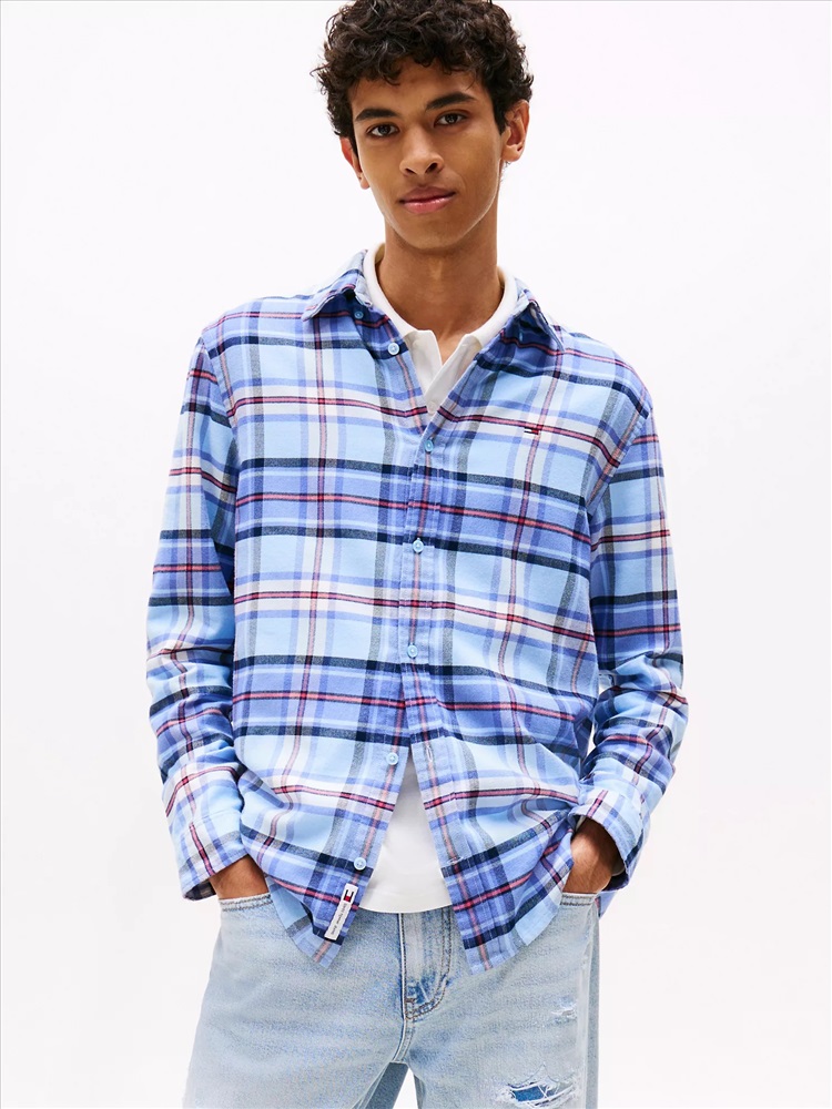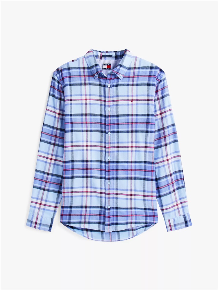 Tommy Hilfiger men's shirt. Refresh your casual wardrobe with this classic flannel shirt, cut in a comfy regular fit and finished in a traditional plaid check. Part of our Tommy Jeans collection.