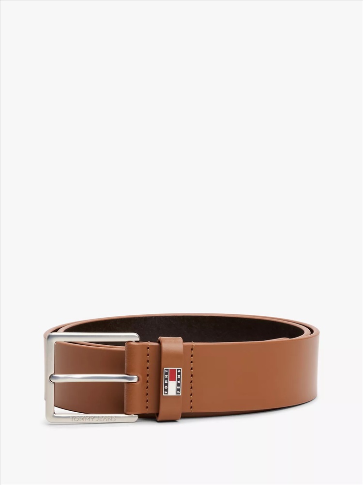 Tommy Hilfiger men's belt. For a polished, put-together look, complete your outfit with our premium leather belt accented by a square buckle and our enamel signature flag at the keeper. Part of our Tommy Jeans collection.