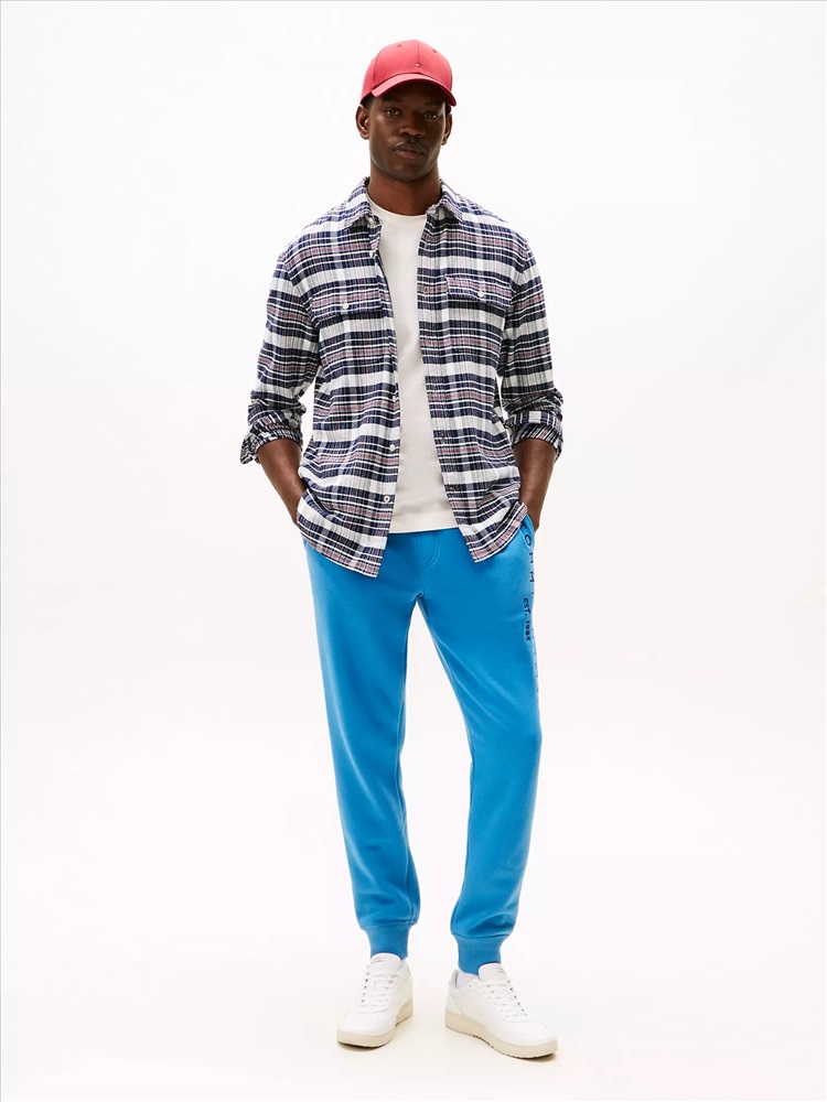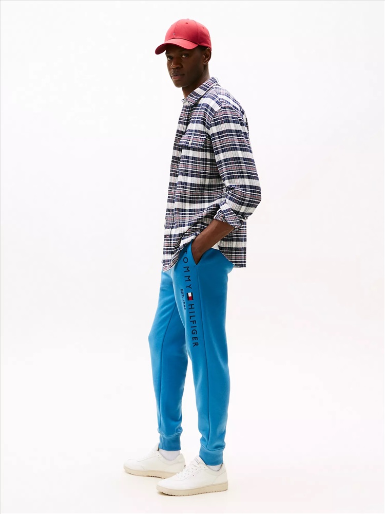 Tommy Hilfiger men's pant. Our seriously soft sweatpants are made from brushed-back fleece with a flat, clean face and smooth feel. This pair is designed with a comfy elastic drawstring waistband and our embroidered Tommy logo along the leg.