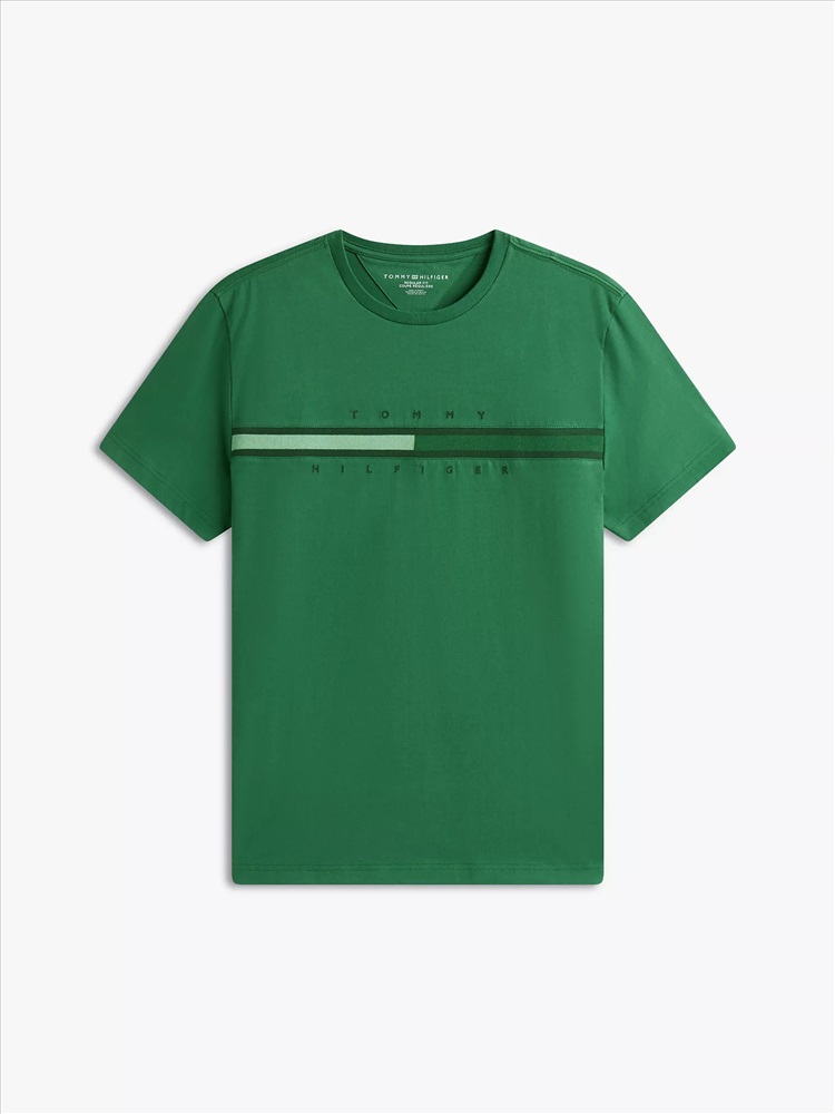 Tommy Hilfiger men's T-shirt. Made from premium cotton, this classic crewneck tee features a tonal play on our embroidered flag logo at the chest.