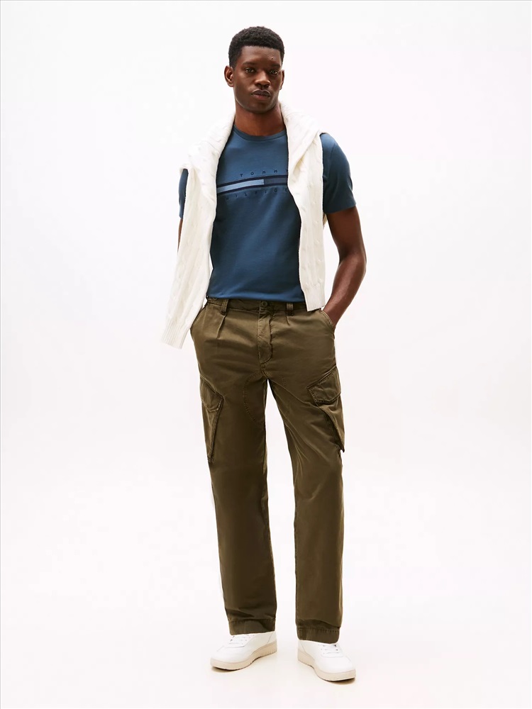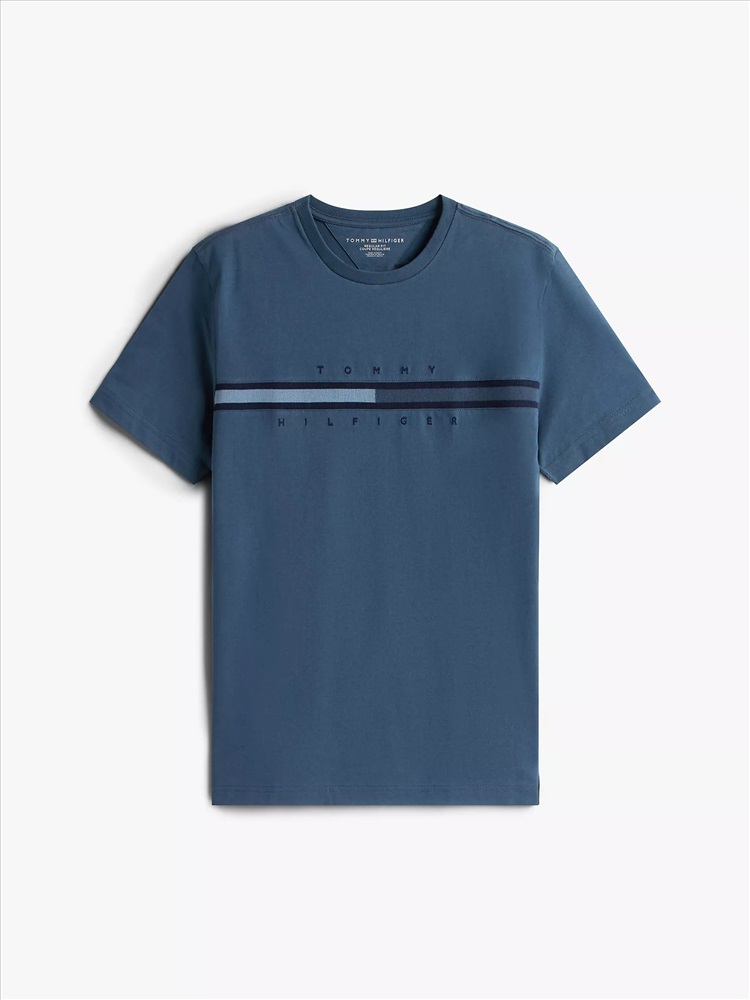 Tommy Hilfiger men's T-shirt. Made from premium cotton, this classic crewneck tee features a tonal play on our embroidered flag logo at the chest.