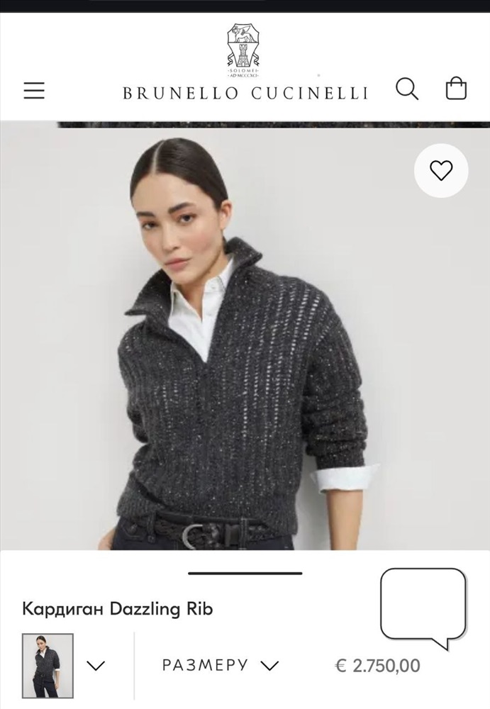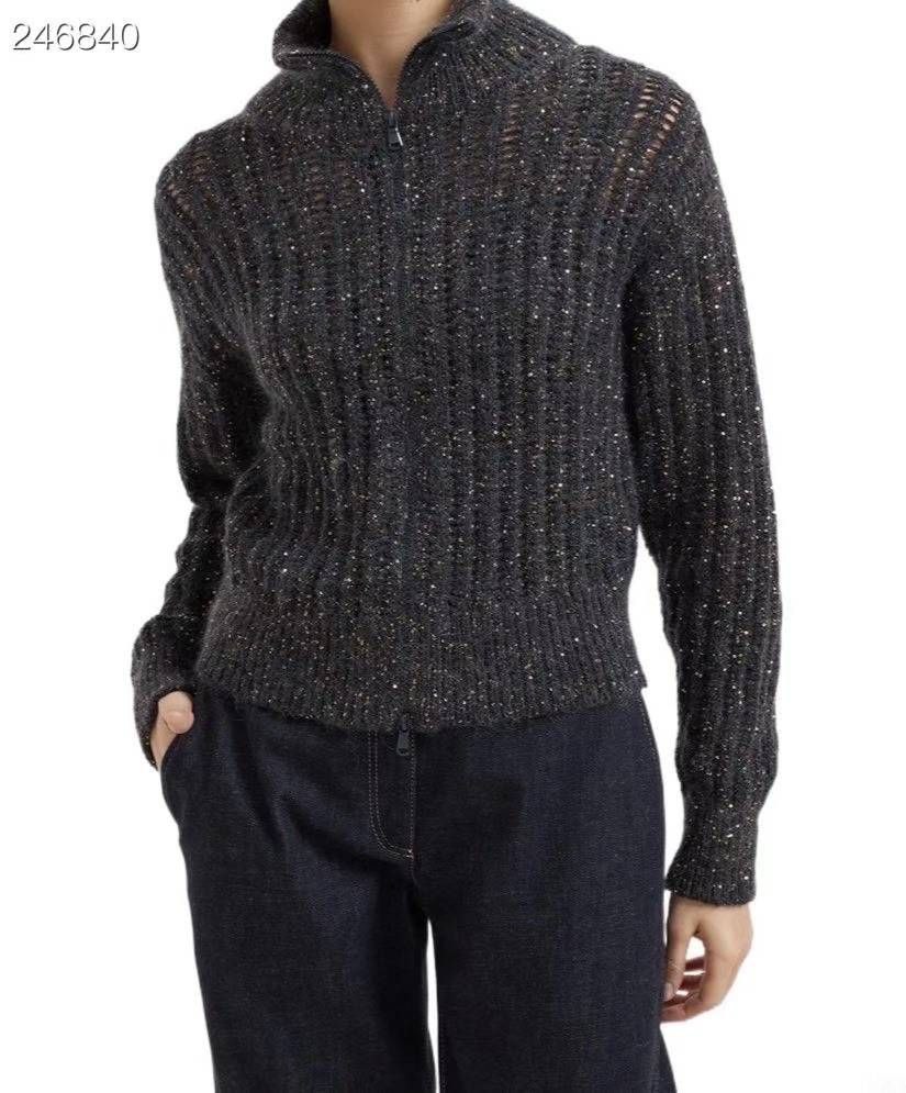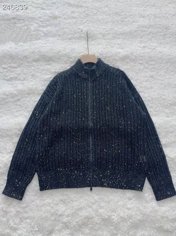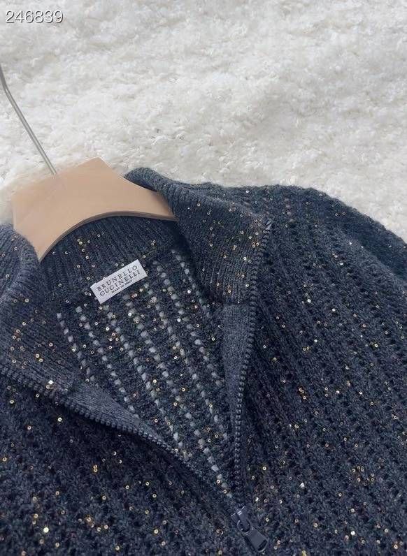 Тонкий кашемировый кардиган на молнии с пайетками Brunell*o Cucinell*i