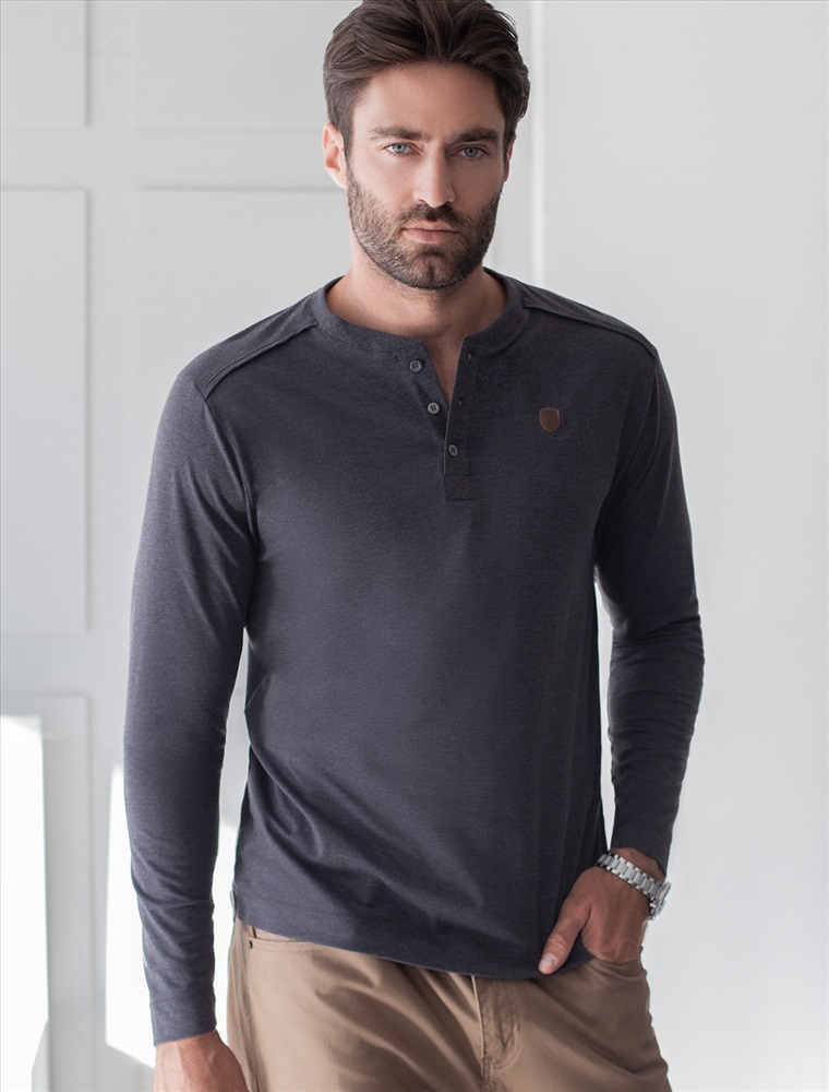 Параметры модели на первом фото: Рост 190, бюст 108, талия 87, бедра 104 Размер товара на первом фото: 54 Лонгслив темно-серого цвета с эффектом меланж с длинным рукавом выполнен из премиального хлопка с эластаном, Мягкий материал обеспечивает приятные тактильные ощущения,натуральный состав ткани позволяет коже дышат, удобен в повседневной длительной носке. Благодаря эластичному материалу лонгслив тянется и создает комфортный полуприлегающий силуэт. Подходит для маленьких и больших размеров, не сковывает движения и сохраняет форму после стирки. Облегающий лонг выгодно выделяет линии тела, при этом в нем ощущается свобода движений. Круглый ворот на металлических пуговицах создает стильный образ, который легко впишется в базовый гардероб. Тонкий джемпер дополнен нашивкой из эко кожи с логотипом бренда. Такой повседневный лонгслив подходит для создания многослойных образов в холодное время года, а в межсезонье и теплые дни можно носить как самостоятельный элемент гардероба, легко комбинируется с повседневной и офисной одеждой в стиле casual. Комментарии к товару