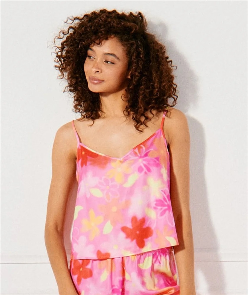 Enamórate de nuestro top EMILIZ. Con la llegada del verano, este top de satén con tirantes finos y un bonito escote en pico es perfecto para la temporada. Disponible en un vibrante estampado de flores de acuarela, es la prenda perfecta para los días de sol. ¡Para usar por dentro o por fuera!