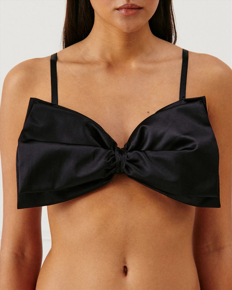 El top corbeille de satén FIOCCHETTIZ, favorito de esta temporada, seduce con su gran lazo en el busto. Su tejido fluido y sus finos tirantes ajustables la hacen elegante y cómoda a la vez. Perfecto para un look chic en cualquier ocasión.