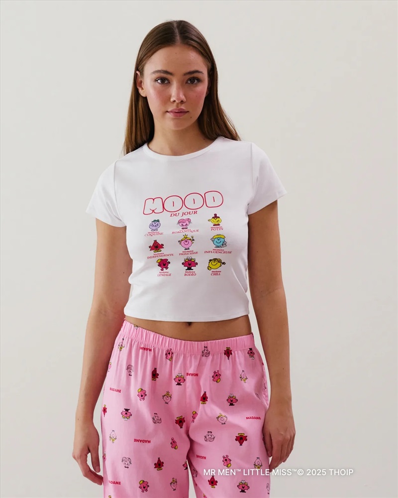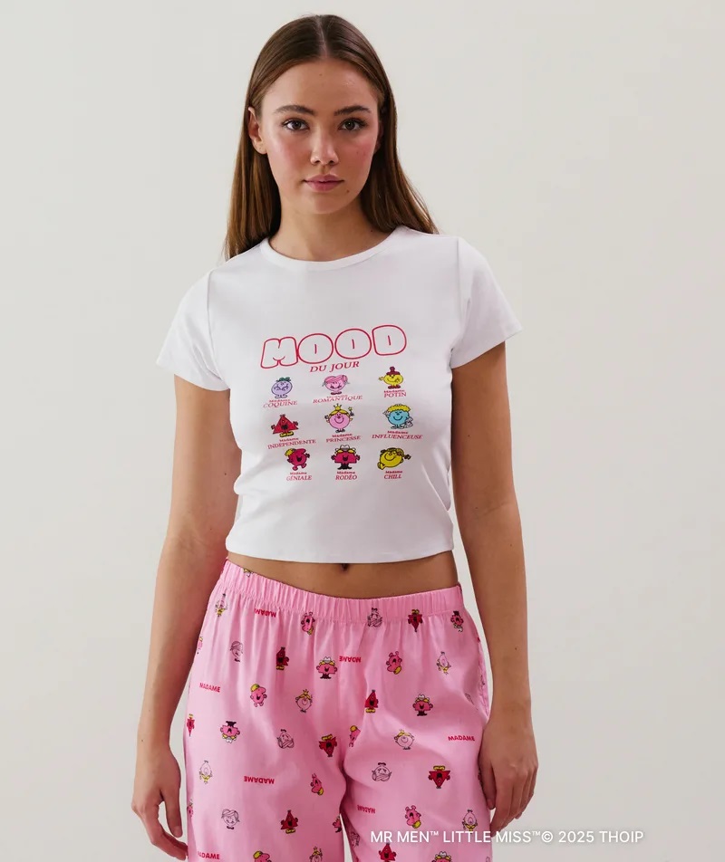 Te encantará este baby-tee de manga corta y punto. Su corte ajustado y ceñido, junto a su cuello redondo, garantizan un estilo moderno y cómodo. ¡El estampado Mood du jour sobre fondo blanco roto es ideal para expresar tu estado de ánimo del día! Completa el look con un pantalón de la misma colección. Además, forma parte de nuestra gama We Care.