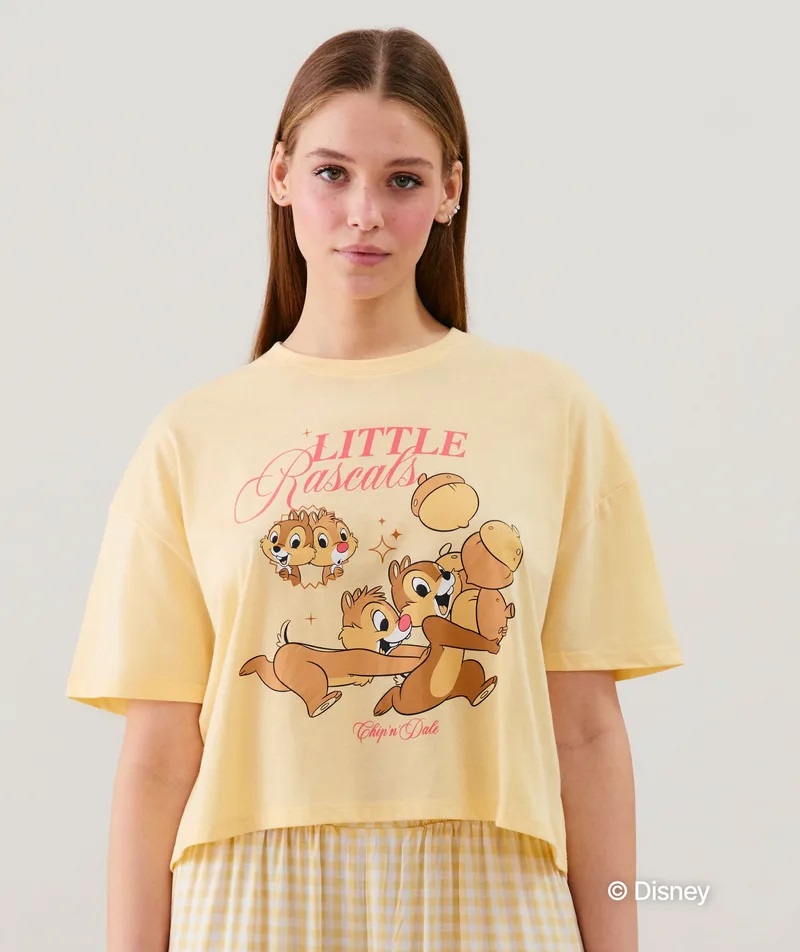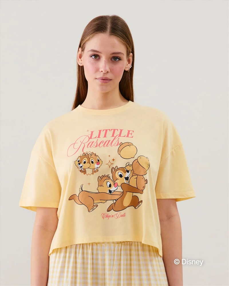 ¡Descubre tu nuevo top con licencia favorito! Con la imagen de tus héroes favoritos, Chip y Dale, este top de jersey es perfecto para relajarte en casa mientras te mantienes súper divertido. Su corte corto y suelto con mangas cortas ofrece una comodidad absoluta para un look relajado y con estilo. Además: forma parte de nuestra gama We care.