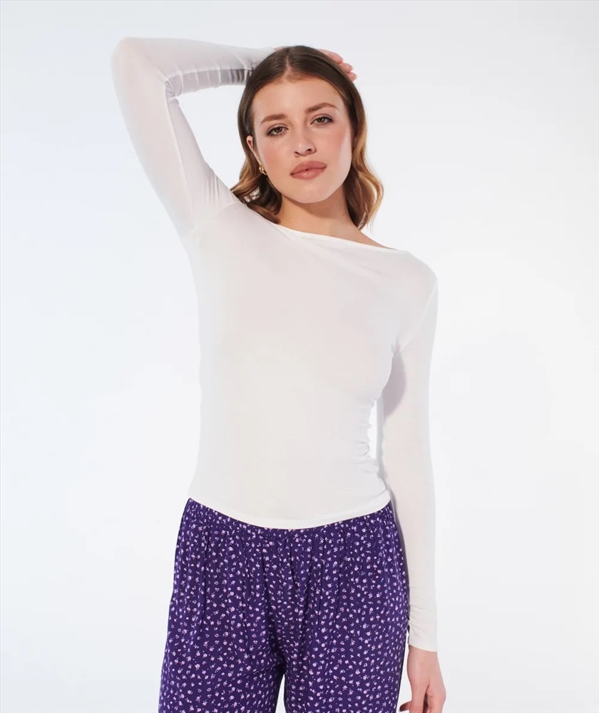 \n\n- Top de pijama ZOLIZ \n- Color: blanco roto \n- Punto jersey \n- Corte ceñido \n- Manga larga \n- Efecto acanalado \n- A juego con el pantalón ZOLIZ \n\nReferencia: ZOLIZ TOP Комментарии к товару
