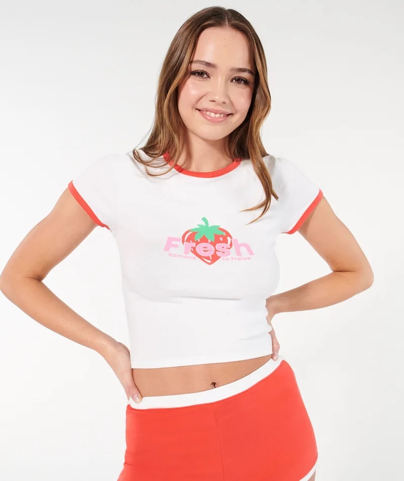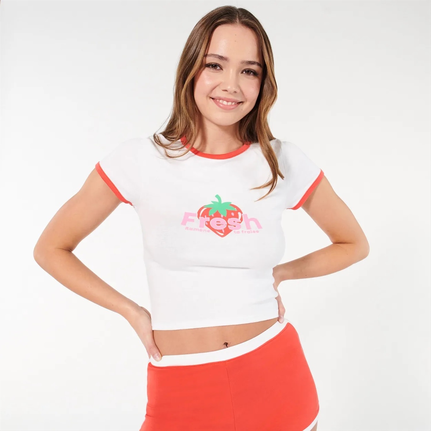\n- Top JUTIZ \n- Color: blanco roto \n- Punto \n- Mensaje: «fresh, ramène ta fraise» \n- Combínalo con los shorts JUTIZ \n- We care \nReferencia: JUTIZ-TOP Комментарии к товару