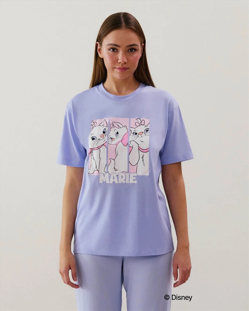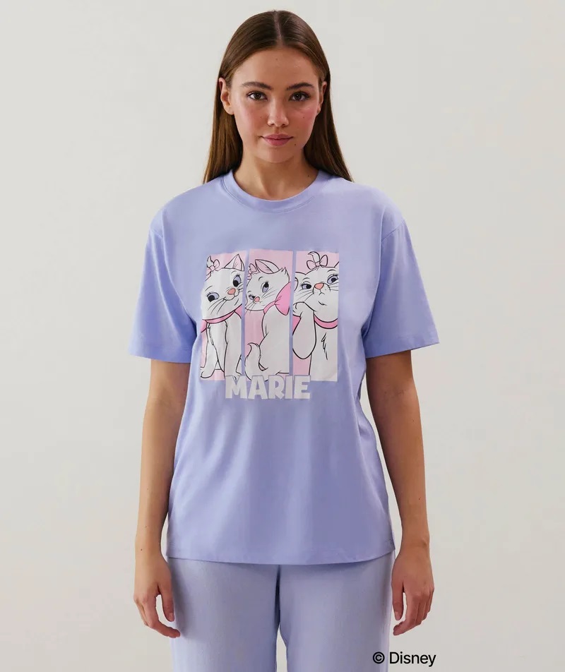 Descubre el top de Marie de manga corta, en punto y con cuello redondo. Nos encanta el estampado de Marie sobre fondo azul cielo, ¡tan mono que no te podrás resistir!