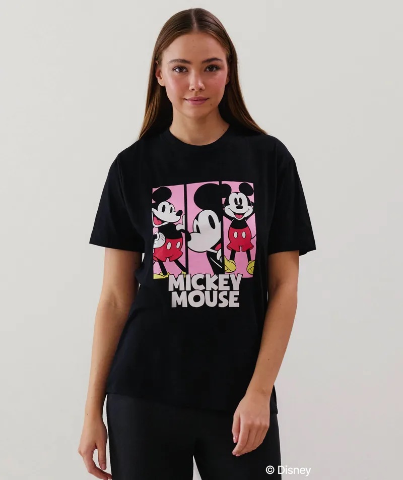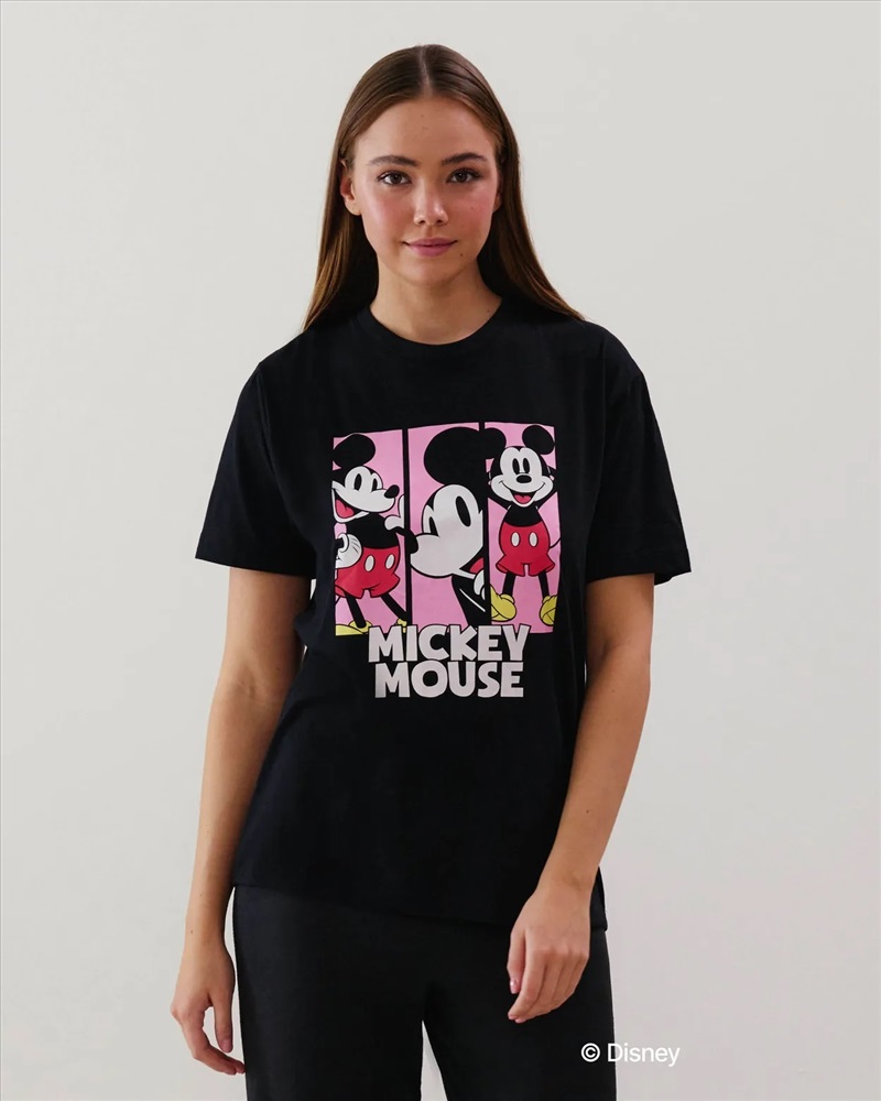 Descubre el top de Mickey de manga corta, en punto y con cuello redondo. Nos encanta el estampado de tu personaje favorito sobre un fondo negro, ¡tan adorable que no te podrás resistir!