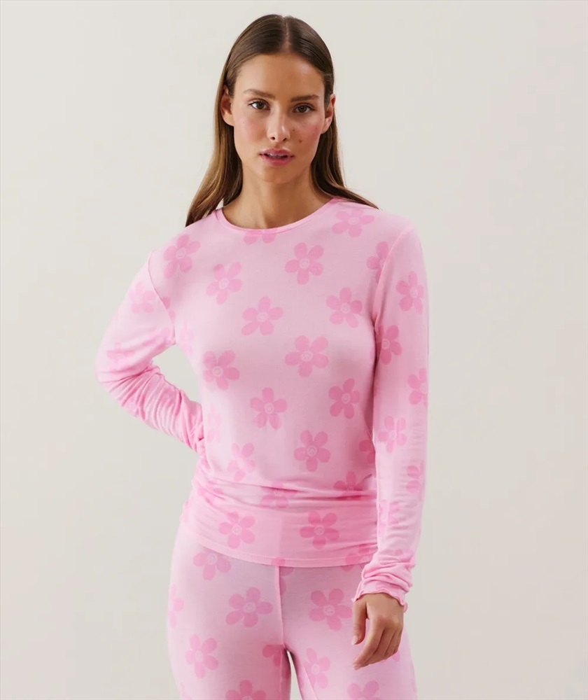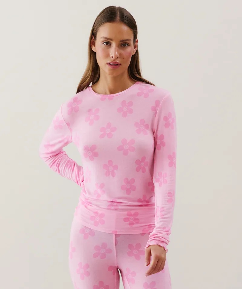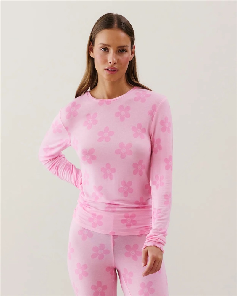 Descubre nuestros nuevos productos COZYLIZ, efecto «segunda piel». Confeccionados en punto, estos tops te proporcionarán comodidad, calidez y suavidad. Póntelos bajo un jersey en pleno invierno, o en casa para relajarte cálidamente. Disponible con un diseño floral sobre fondo rosa, es ideal para mantenerte abrigada.