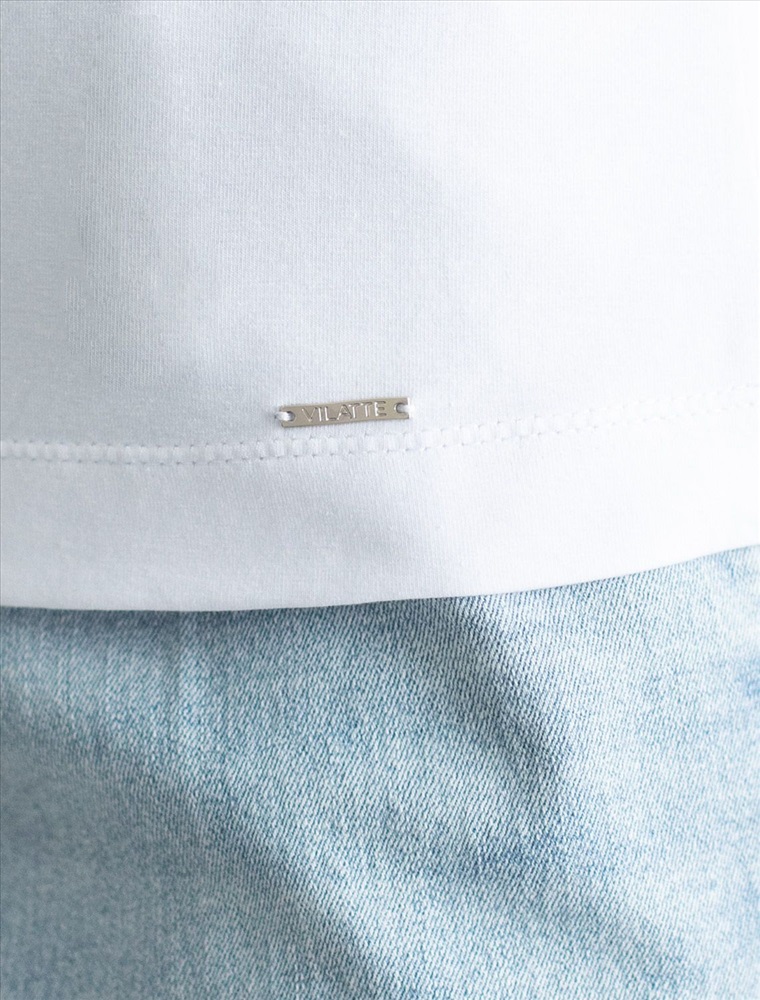 Топ выполнен из премиального хлопка с эластаном. Лаконичная базовая модель впишется в любой гардероб и дополнит многослойные образы. Материал изделия хорошо тянется и гарантирует идеальную посадку по фигуре. Из украшений только металлическим логотипом бренда.