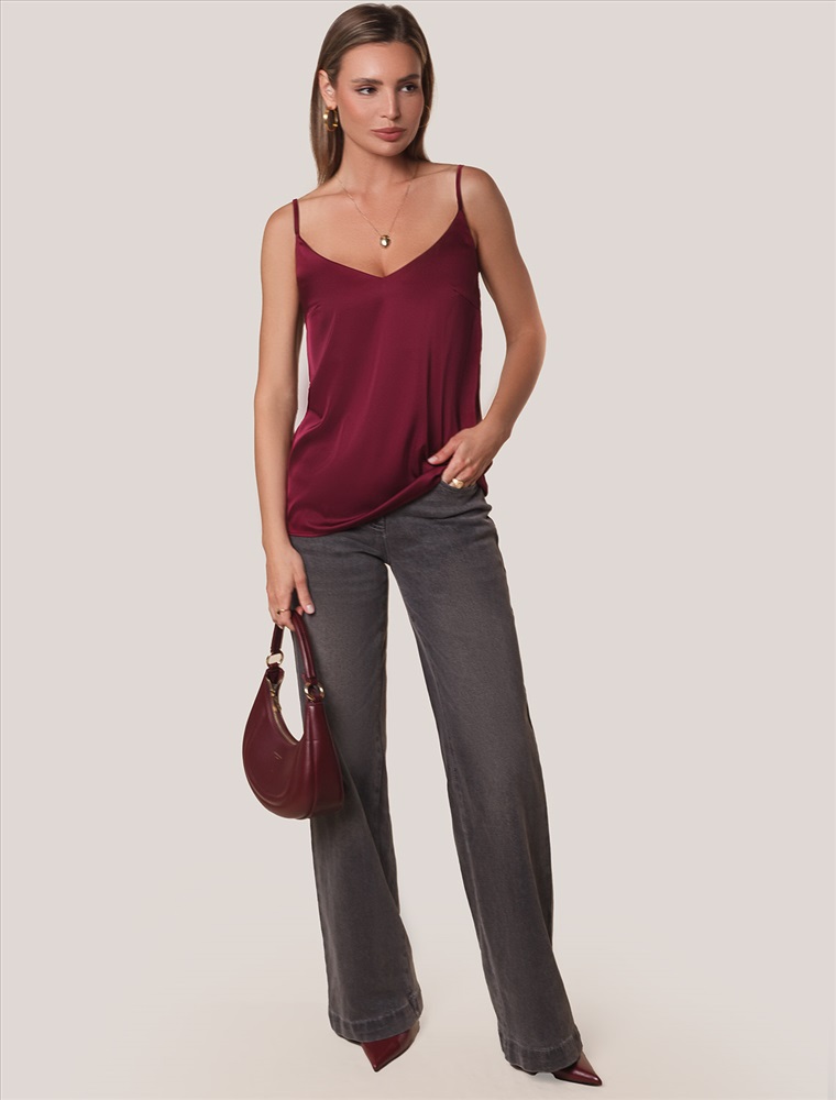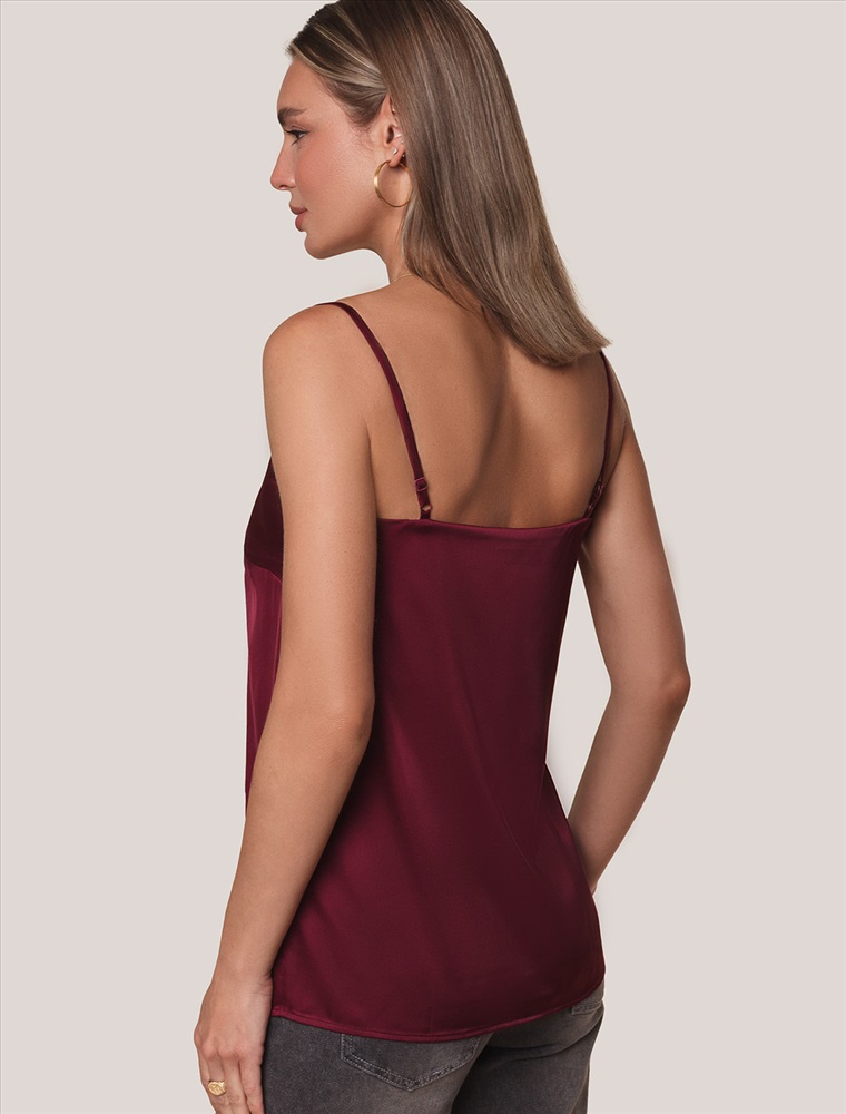 Элегантный топ винного цвета с регулируемыми лямками выполнен из сатиновой ткани премиального качества, сочетающей полиэстер и эластан в составе. Этот уникальный дуэт материалов обеспечивает комфортную посадку топа. Универсальный крой делает топ идеальным базовым элементом как для повседневных образов с джинсами или юбкой, так и для вечерних луков под жакет или кардиган.