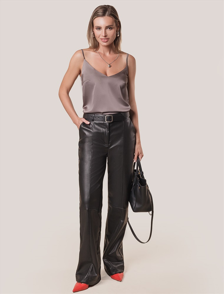 Параметры модели на первом фото: Рост 170, бюст 89, талия 63, бедра 92 Размер товара на первом фото: 42 Элегантный топ кофейного цвета с регулируемыми лямками выполнен из сатиновой ткани премиального качества, сочетающей полиэстер и эластан в составе. Этот уникальный дуэт материалов обеспечивает комфортную посадку топа. Универсальный крой делает топ идеальным базовым элементом как для повседневных образов с джинсами или юбкой, так и для вечерних луков под жакет или кардиган. Комментарии к товару