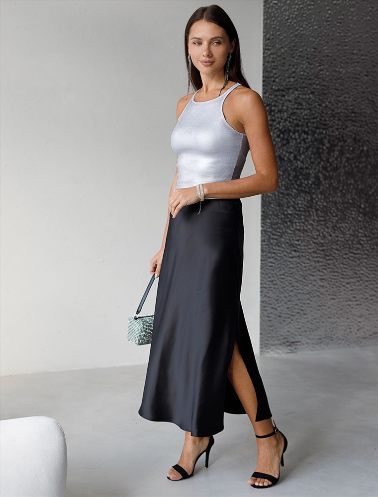 Натуральный дышащий материал обеспечивает комфортный микроклимат на протяжении всего дня, не вызывая дискомфорта даже при длительном ношении. Износостойкое покрытие сохраняет блеск и привлекательность майки несмотря на частое использование. Топ прекрасно сочетается с деловым костюмом или аксессуарами, позволяя создавать как строгие, так и вечерние образы.