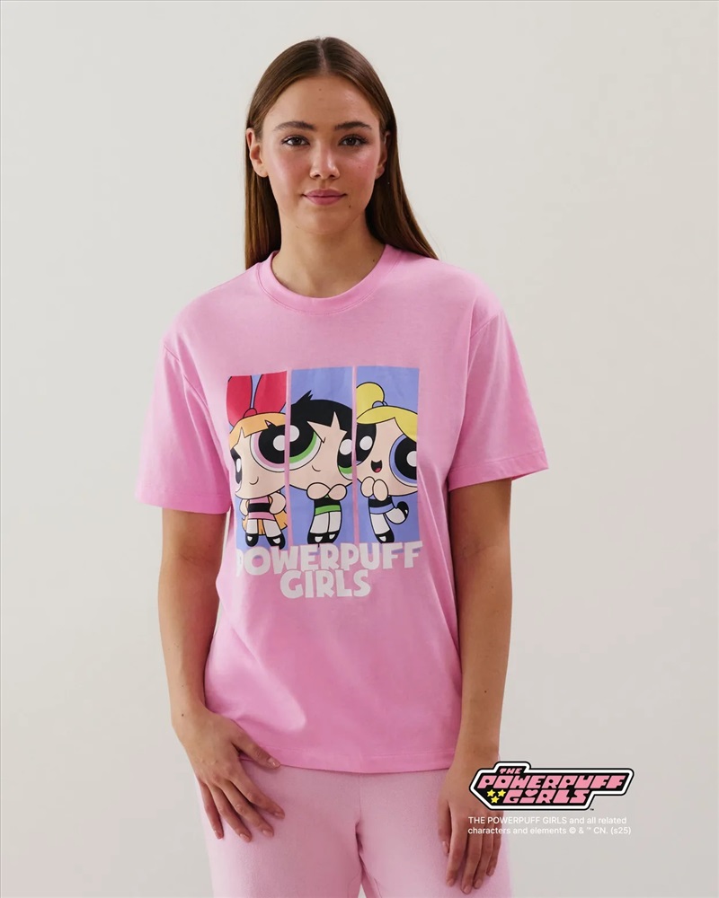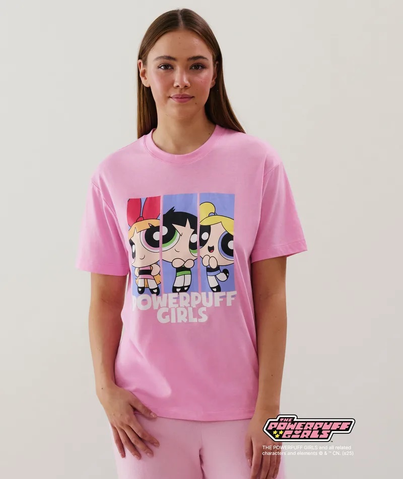 Descubre el top de las Super Nenas de manga corta, en punto y con cuello redondo. Nos encanta el estampado con tus tres heroínas favoritas sobre fondo rosa, ¡es tan adorable que es imposible resistirse!