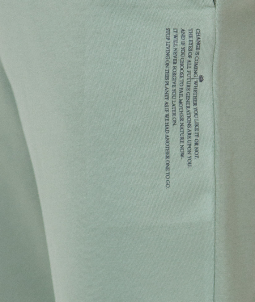 Длина: Худи 62 см, брюки 102 см Спортивный костюм для женщин. Толстовка с длинными рукавами и капюшоном, два боковых кармана в швах изделия, детали в рубчик в тон. Брюки со средней посадкой, эластичный пояс на регулируемых шнурках, боковые карманы, эластичные манжеты. Текстовый принт "Защити Планету" Изделия выполнены из петельчатого футера трехнитки высокого качества «пенье» 320г/м2. Трикотаж качества «пенье» отличается высокими износостойкими качествами и внешним видом. Перед раскроем ткани проходят декатировку (специальная обработка паром), чтобы избежать деформацию изделий при использовании и усадки после стирки. Принты нанесены при помощи шелкографии или прямой печати, после проходят термическую обработку, что придает рисунку максимальную износостойкость и позволяет сохранять яркость цвета после стирки. Комментарии к товару