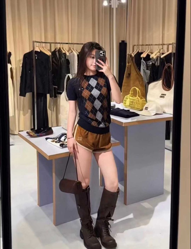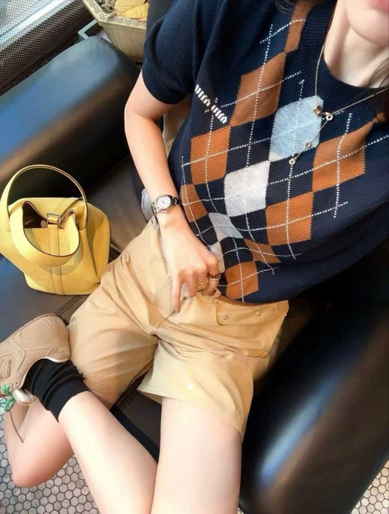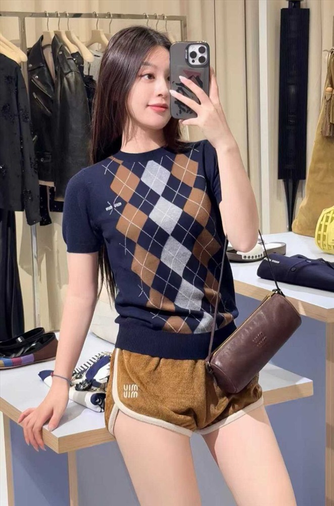 Трикотажный пуловер с коротким рукавом 🩷 Экспорт MI*U MI*U
