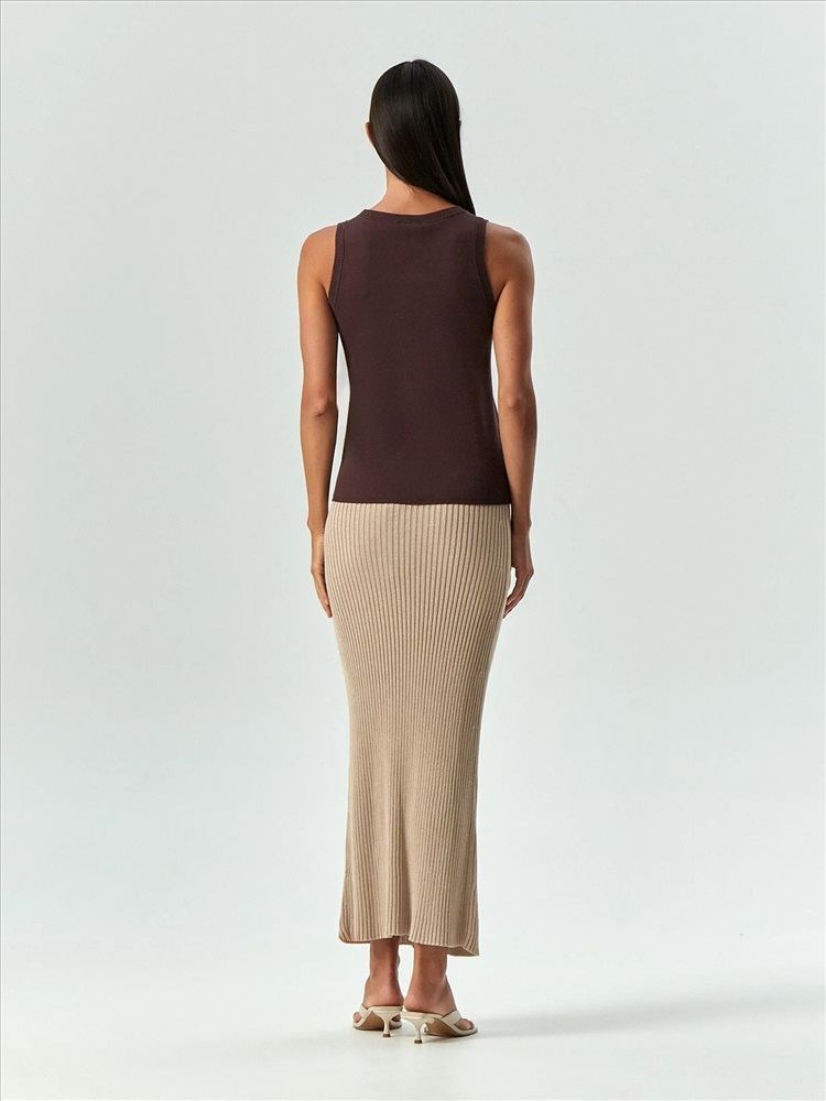 Длина: 55 см. Цвет: коричневый Силуэт: приталенный Сезон: демисезон Рукав: без рукава Застёжка: без застежки Подкладка: без подкладки Рост модели: 175-178 См 95% вискоза, 5% полиэстер Комментарии к товару