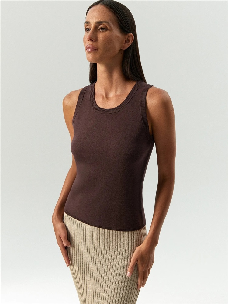 Комфортный топ из вискозы отлично садится по фигуре. Позволяет продемонстировать красивые плечи и ключицы. Станет основой множества повседневных образов. Сочетается с любым денимом, рубашками, жакетами любых фасонов. Выполнен в универсальном коричневом цвете.